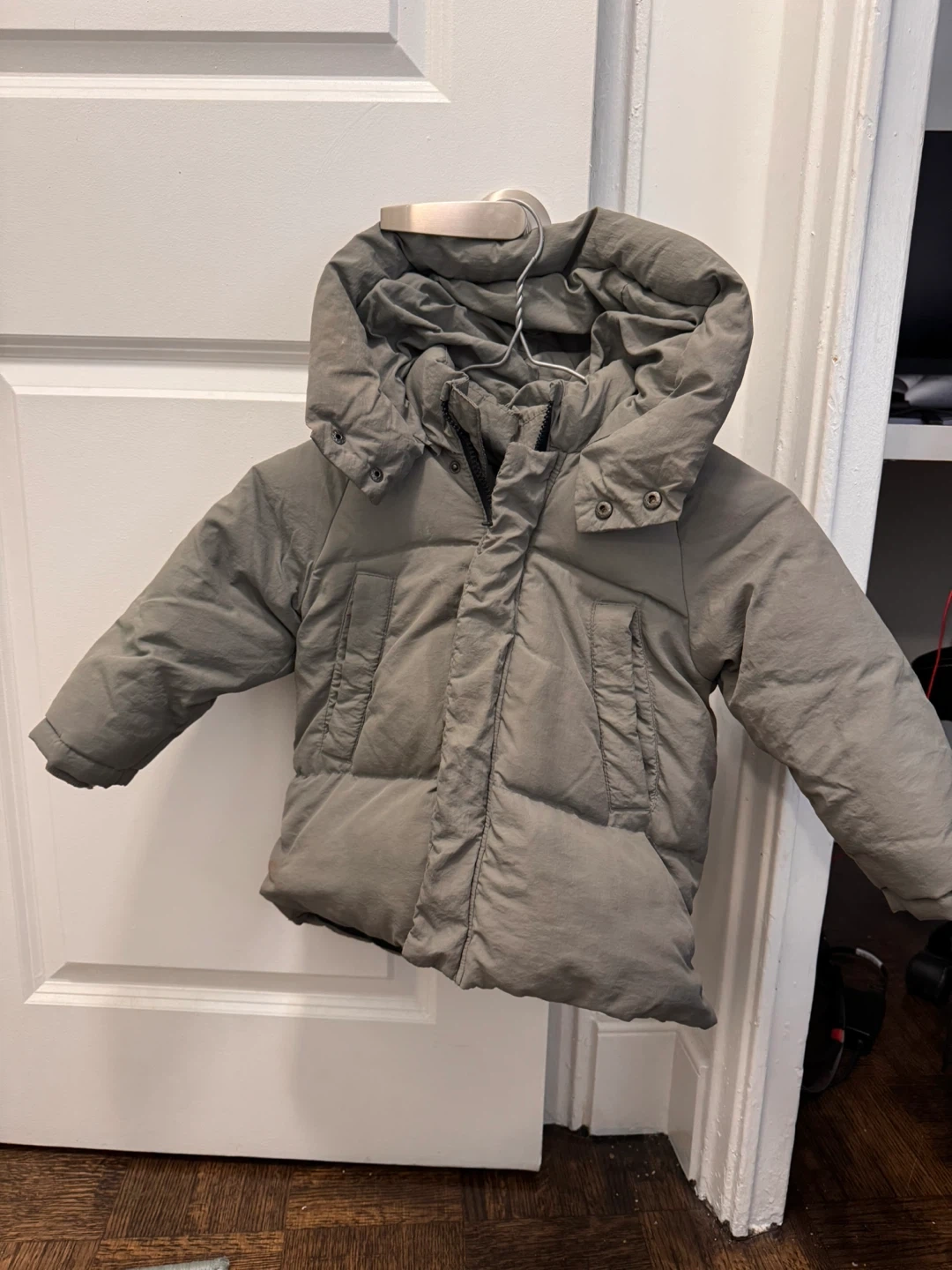 Here's a Zara baby puffer jacket, perfect for keeping your little one warm! My kid has outgrown this jacket and has kept him cozy in the coldest days during winter. It's sized for 18-24 months. It would nicely fit kids up to 3 years. This warm outerwear is both stylish and retains heat very well while ensuring lightness and ease of movement. It's also washable and water repellent!