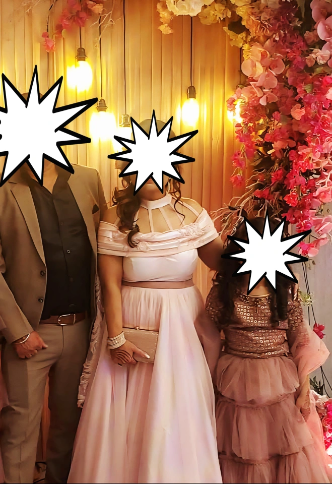 70Designer Pink party dress. It is one piece although looks like skirt is separate. It is very pretty and heVy skirt. it was bought for $500. worn only once. Designer Party Dress for a lad- Baby pink with multitone shine in fabric make and offer