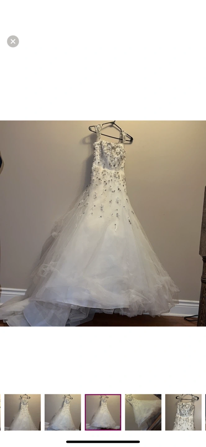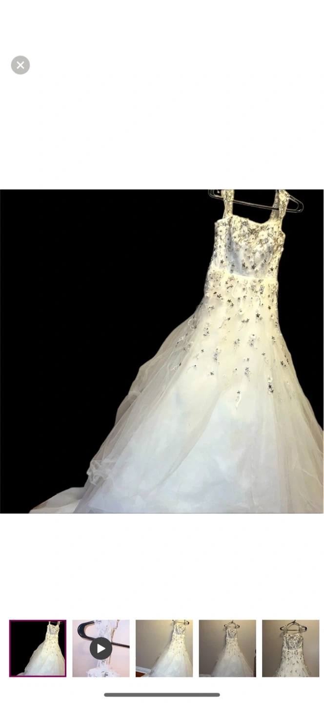 75Beautiful Rivini wedding dress, approximately size 6. The dress is white and features delicate embellishments. It measures about 60 inches in length from top to bottom and around 17 inches across the bodice. Perfect for your special day!