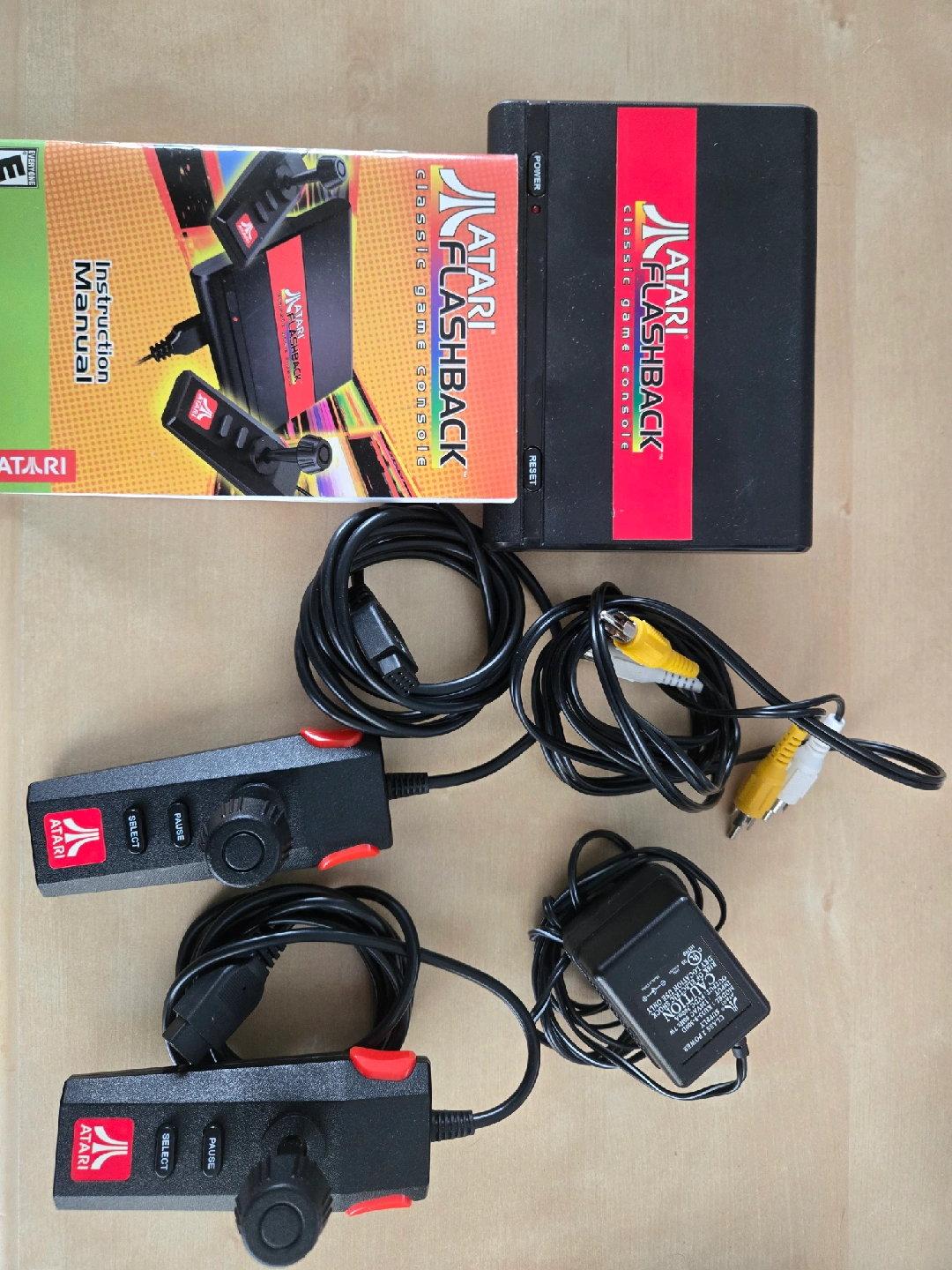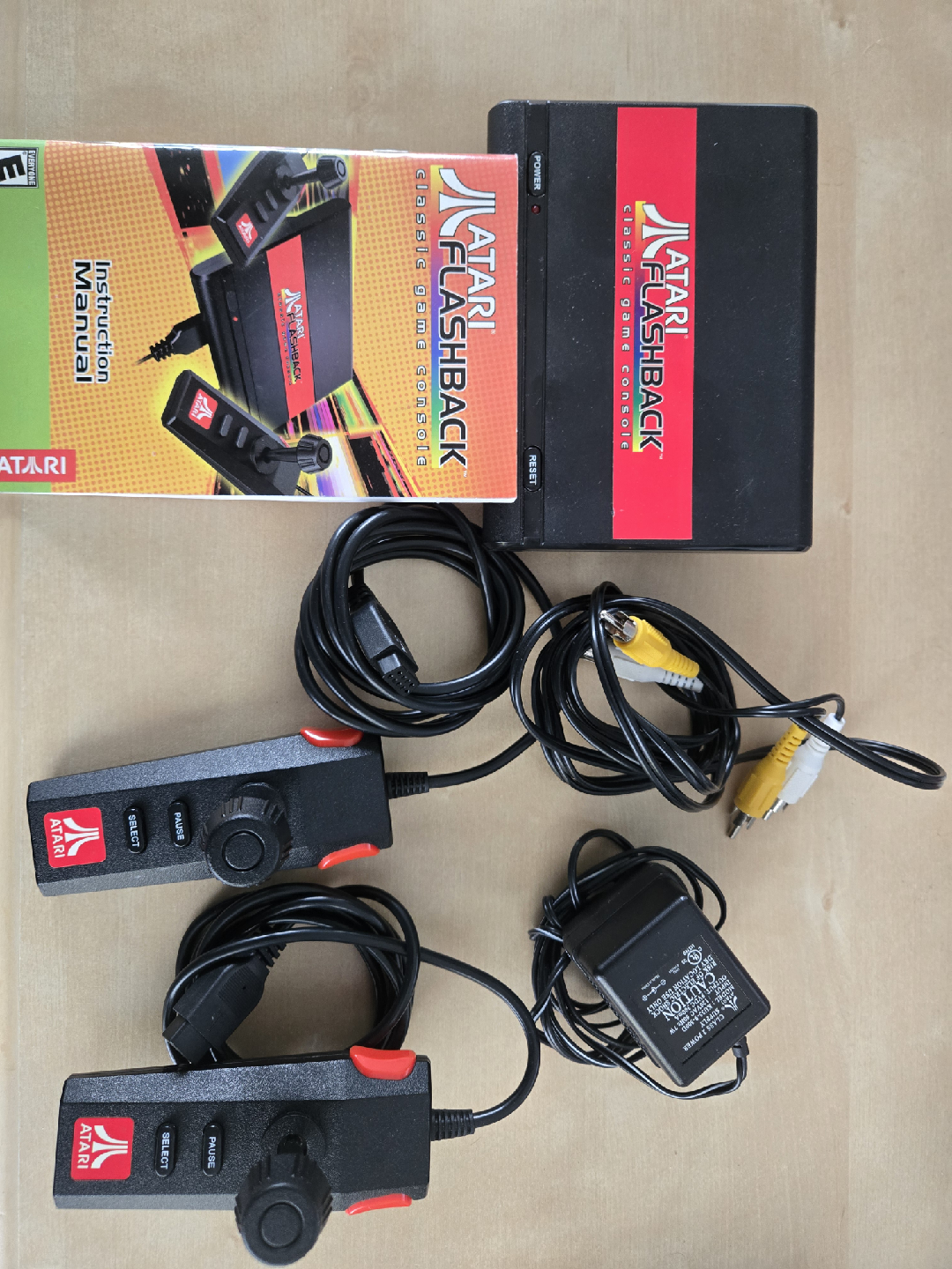 Selling an Atari Flashback classic game console! It comes with two controllers, the console itself, the instruction manual, and the necessary cables to hook it up and start playing those classic games