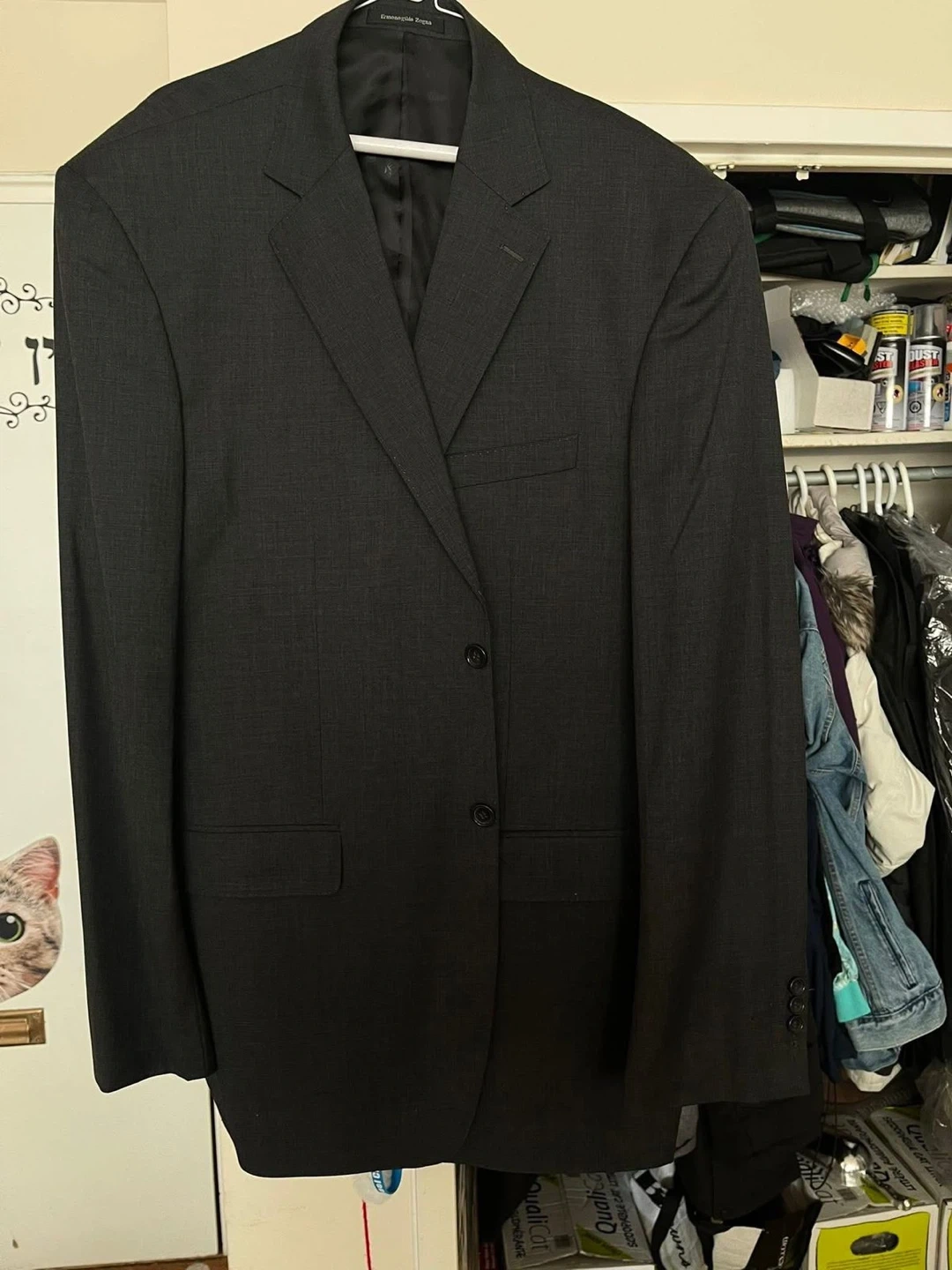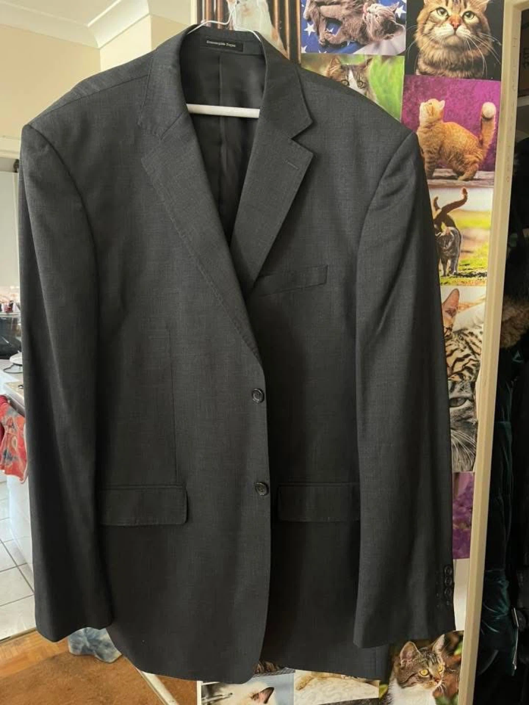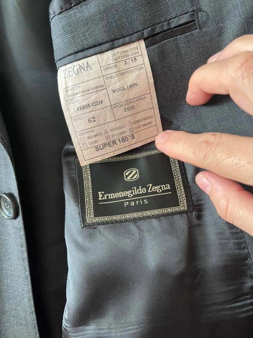 Selling a gently used Ermenegildo Zegna suit in size 62. It's made of 100% wool and has a Super 160's fabric. This is a stylish, western-style suit made with quality materials!