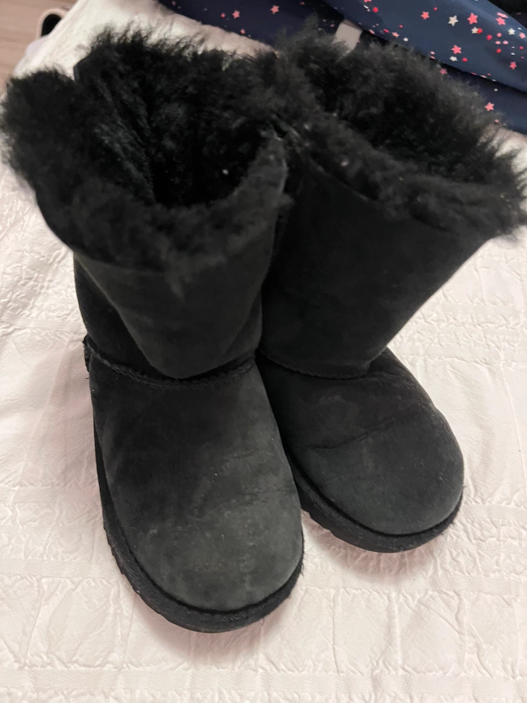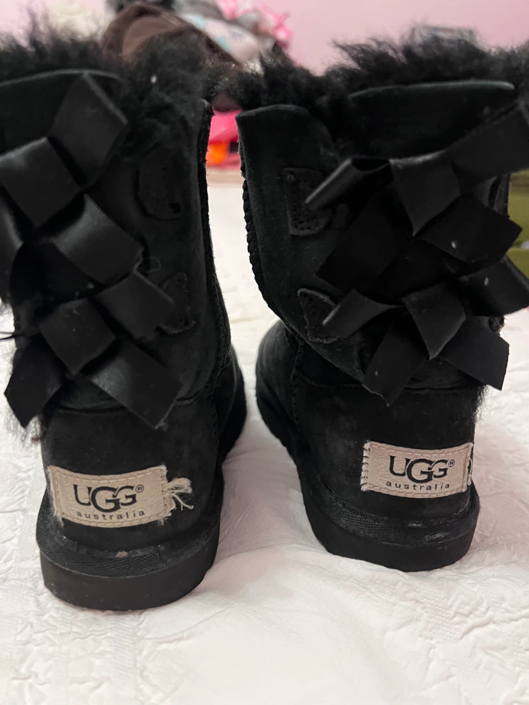 Selling a pair of UGG Australia boots in black! They're in great condition and feature a cute bow detail on the back.