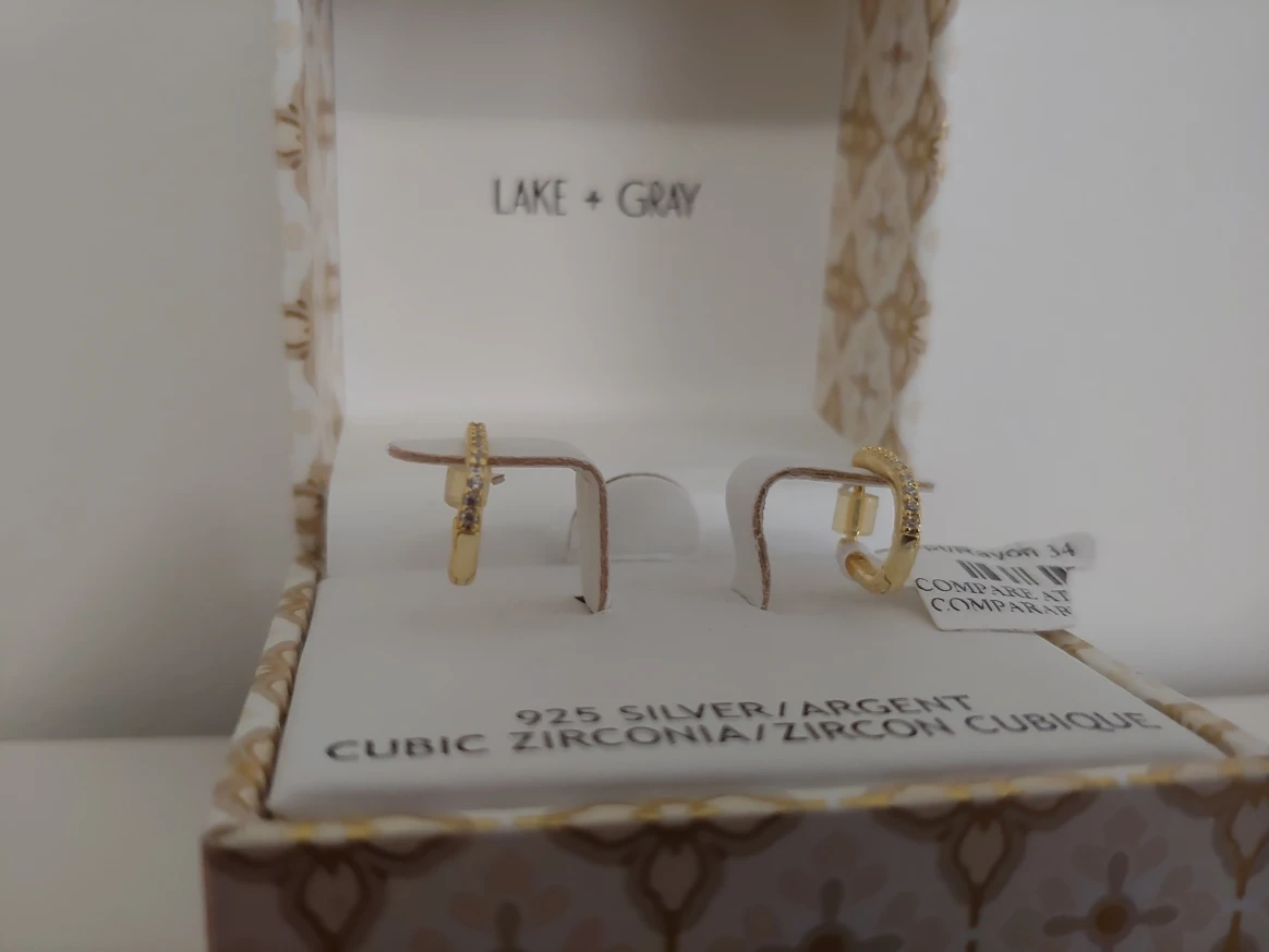764Brand New Lake + Gray hoop earrings. Small and sweet for a child or anyone who likes small delicate earrings. They are 925 silver and cubic zirconia and come in original box. can do local delivery.