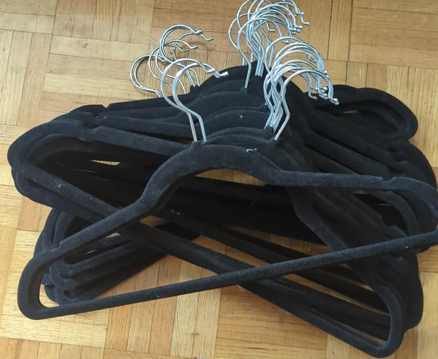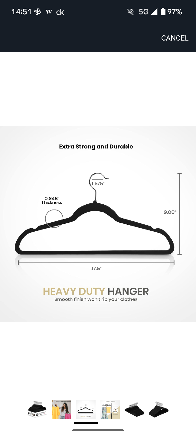 Selling a set of 35 black velvet hangers. They're in great shape and ready to keep your clothes organized. These hangers are extra strong and durable, with a finish that prevents clothes slipping kff. Each hanger measures approximately 17.5" wide and 9.06" tall, with a thickness of 0.248".