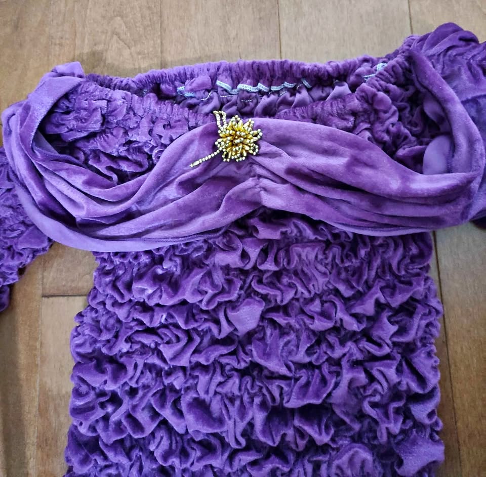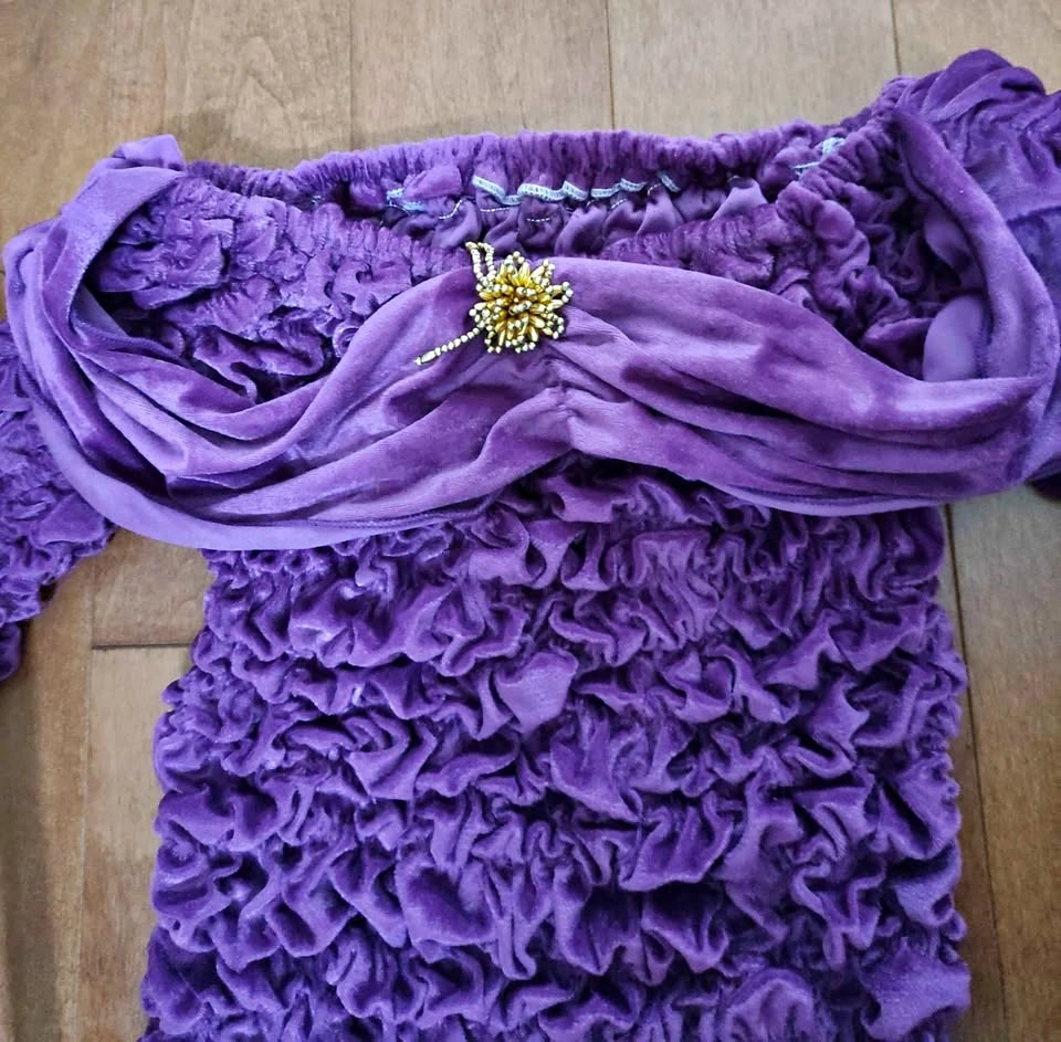 Purple blouse and matching pants - a spooky-chic duo perfect for Halloween bashes or fancy parties! Gently used. Refer to photos for size measurements.