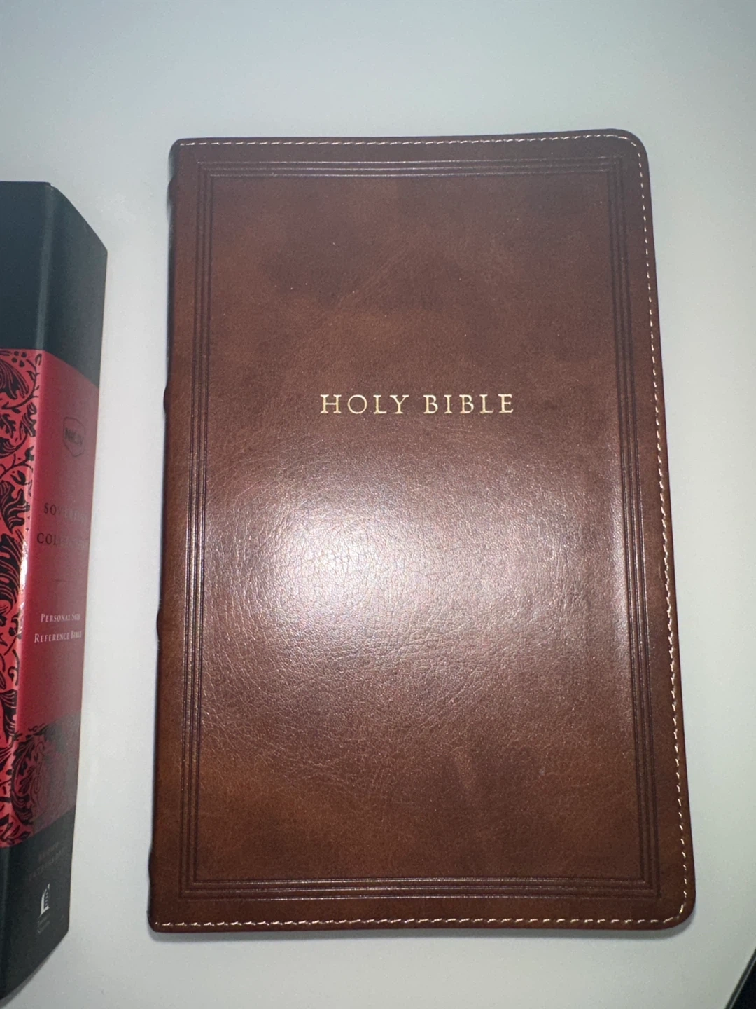 Selling a Thomas Nelson New King James Bible from the Sovereign Collection. It's a personal size edition with a brown leathersoft cover. Perfect for personal study or as a thoughtful gift!