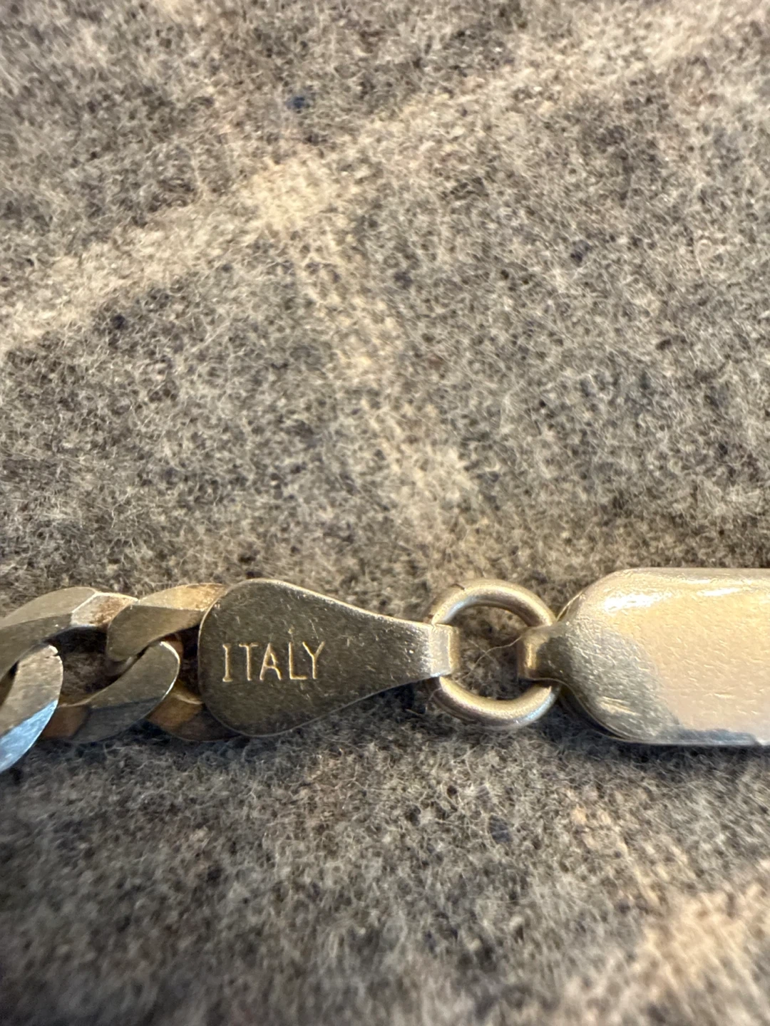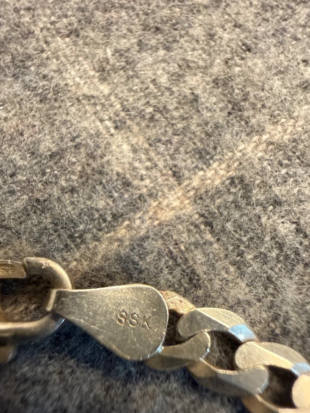 10Selling a silver chain necklace. It's marked with 'Italy' and '925' indicating sterling silver. Also has 'SSK' engraved on the clasp. It's in great shape and ready for a new home