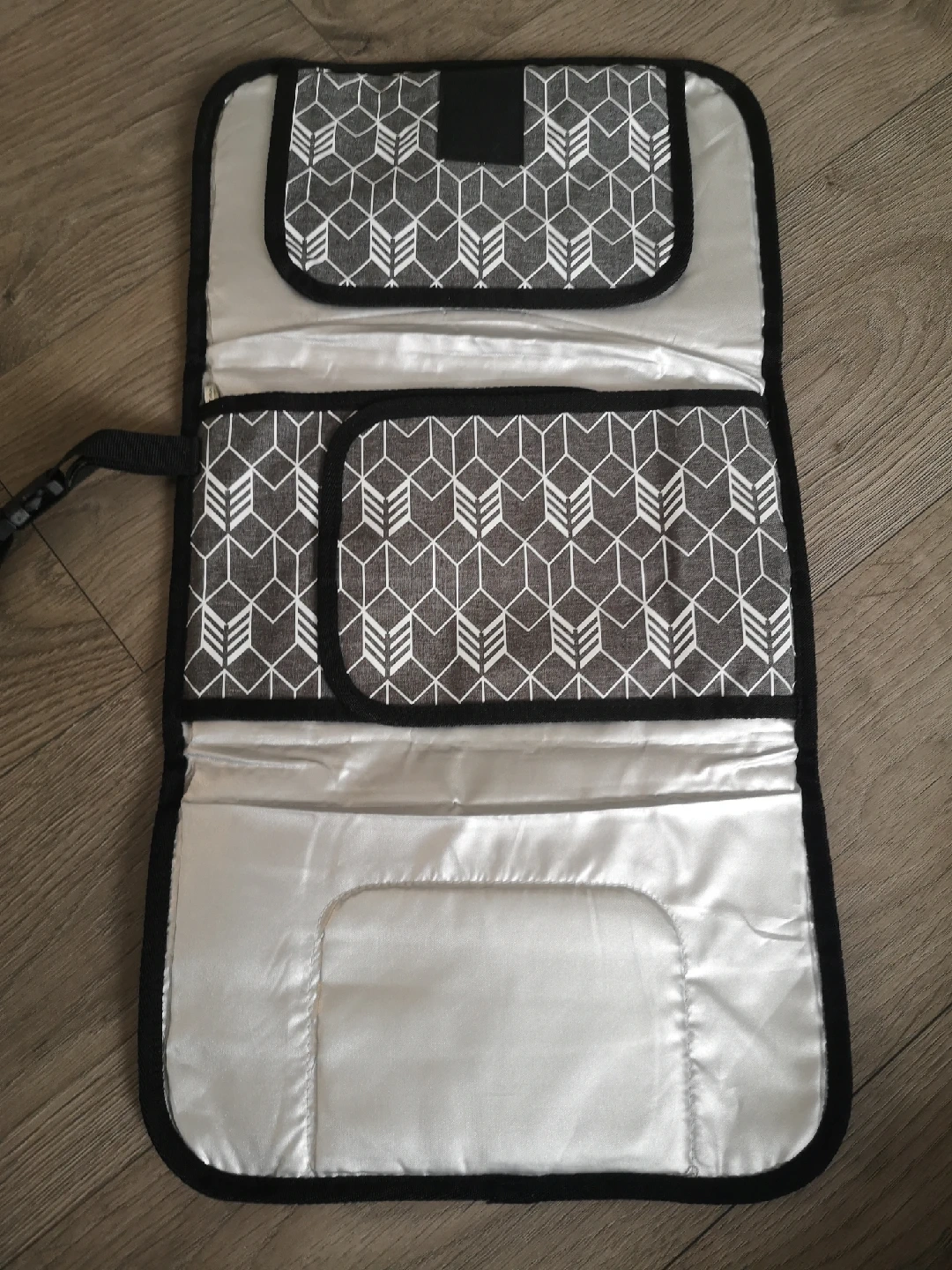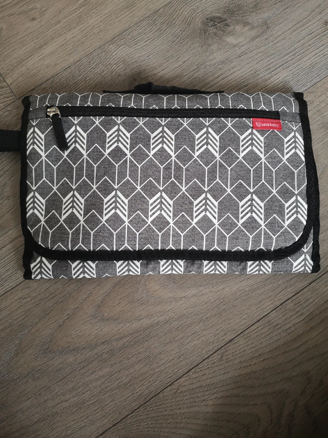 Keep your little one comfy and clean on the go with this portable changing pad from Lassig! It features a stylish grey and white geometric pattern. Perfect for quick diaper changes anywhere!
