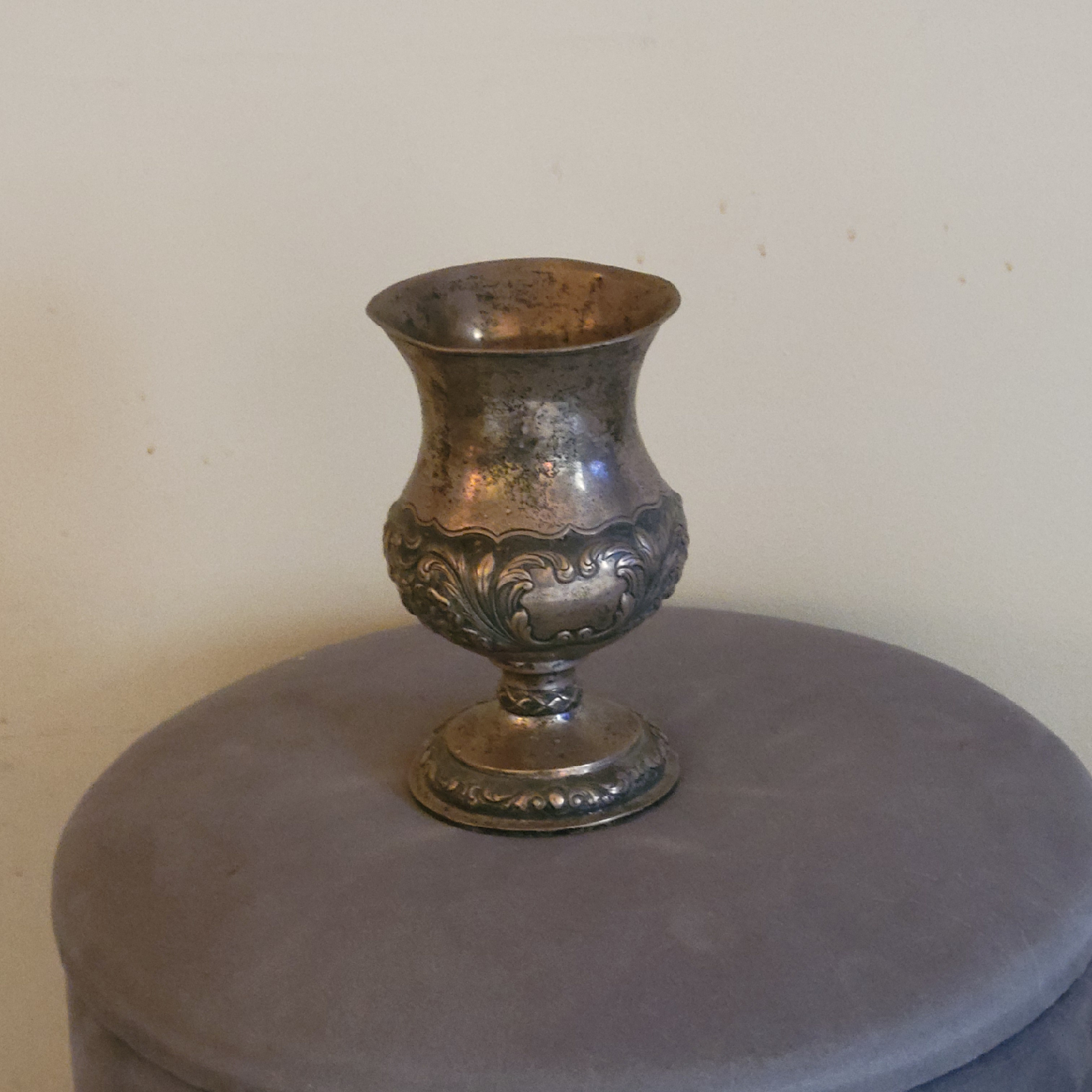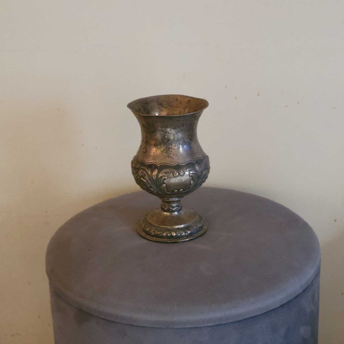 Selling a vintage silver goblet. It has a beautiful ornate design and would make a lovely addition to any collection or home