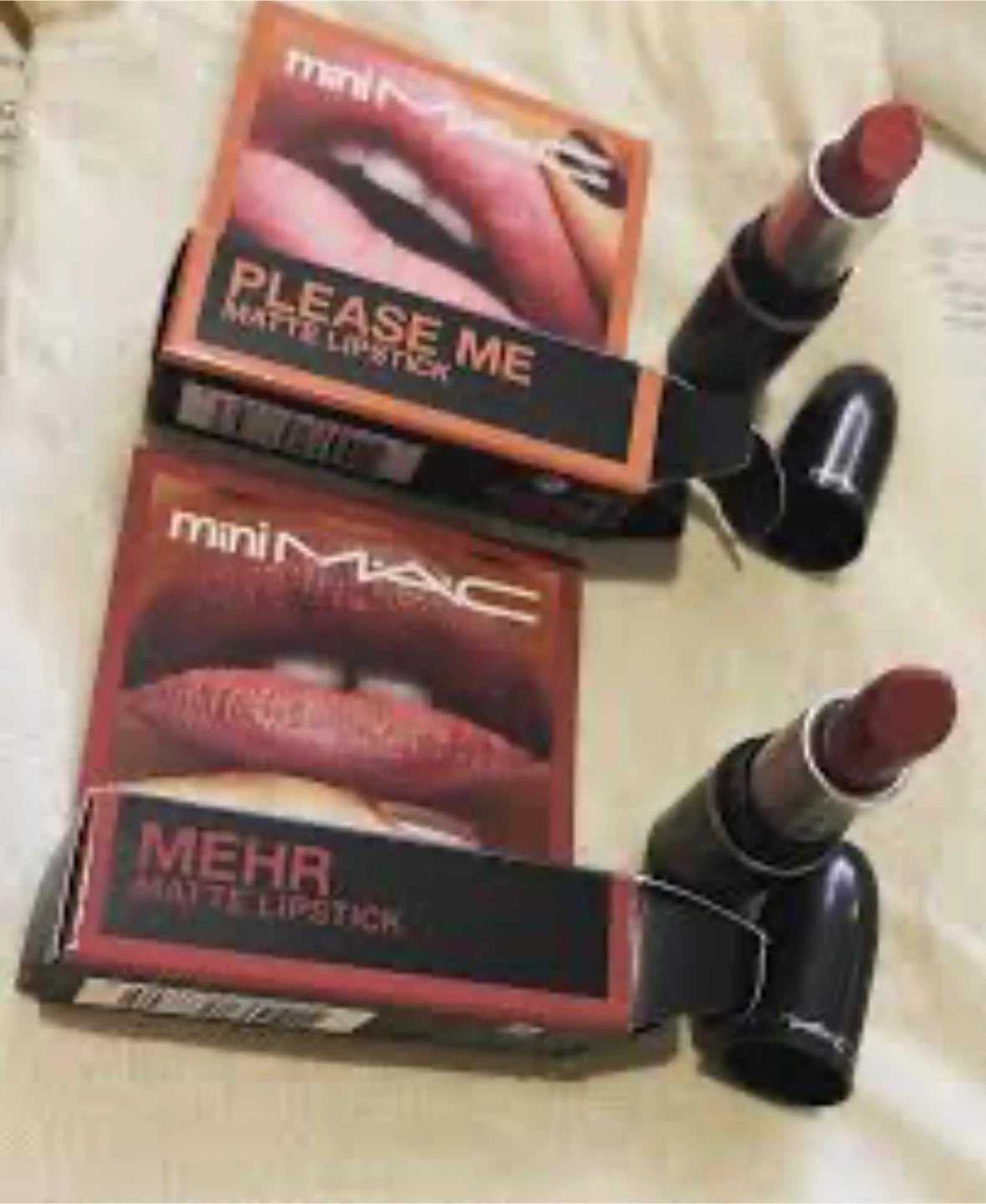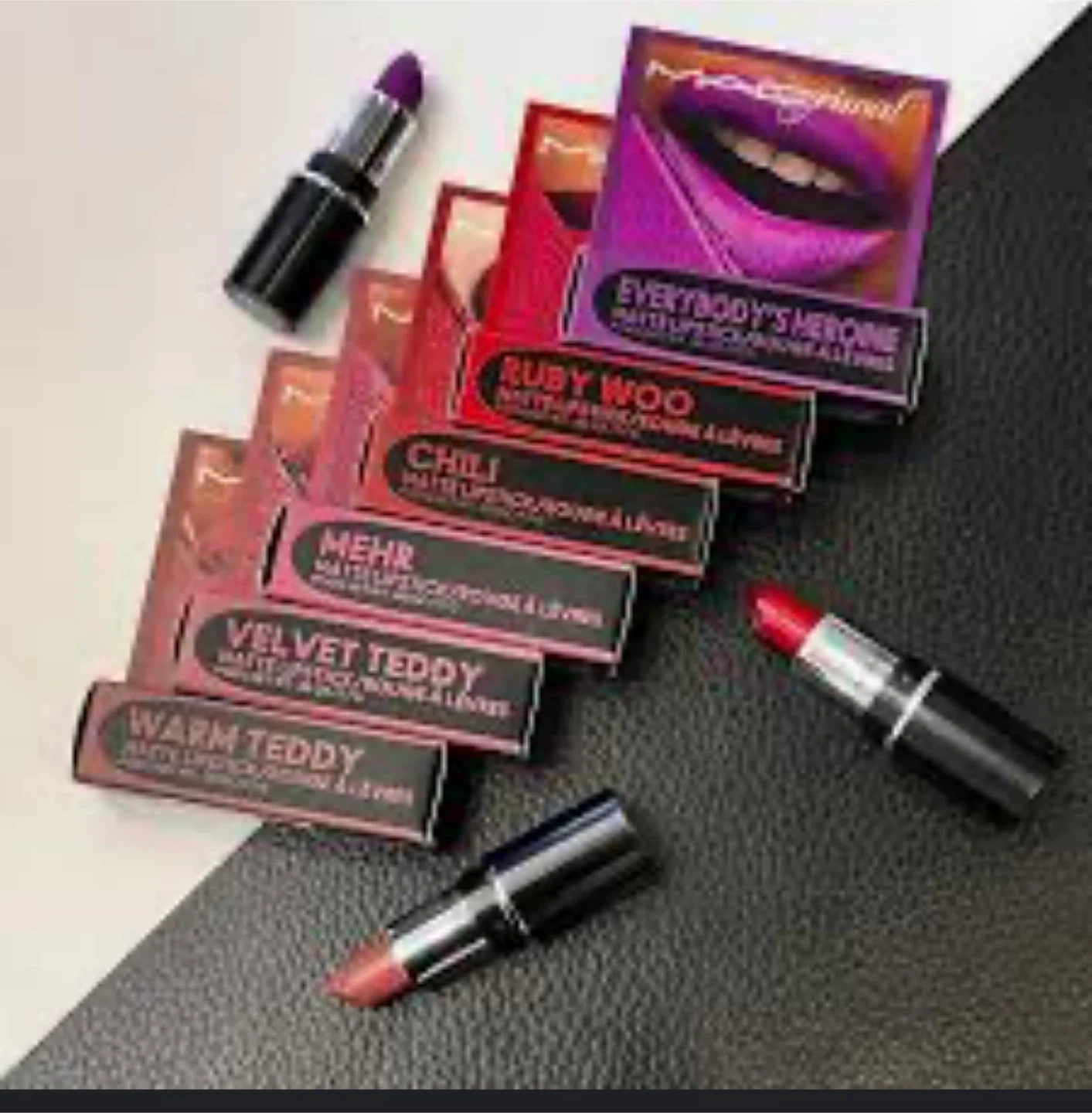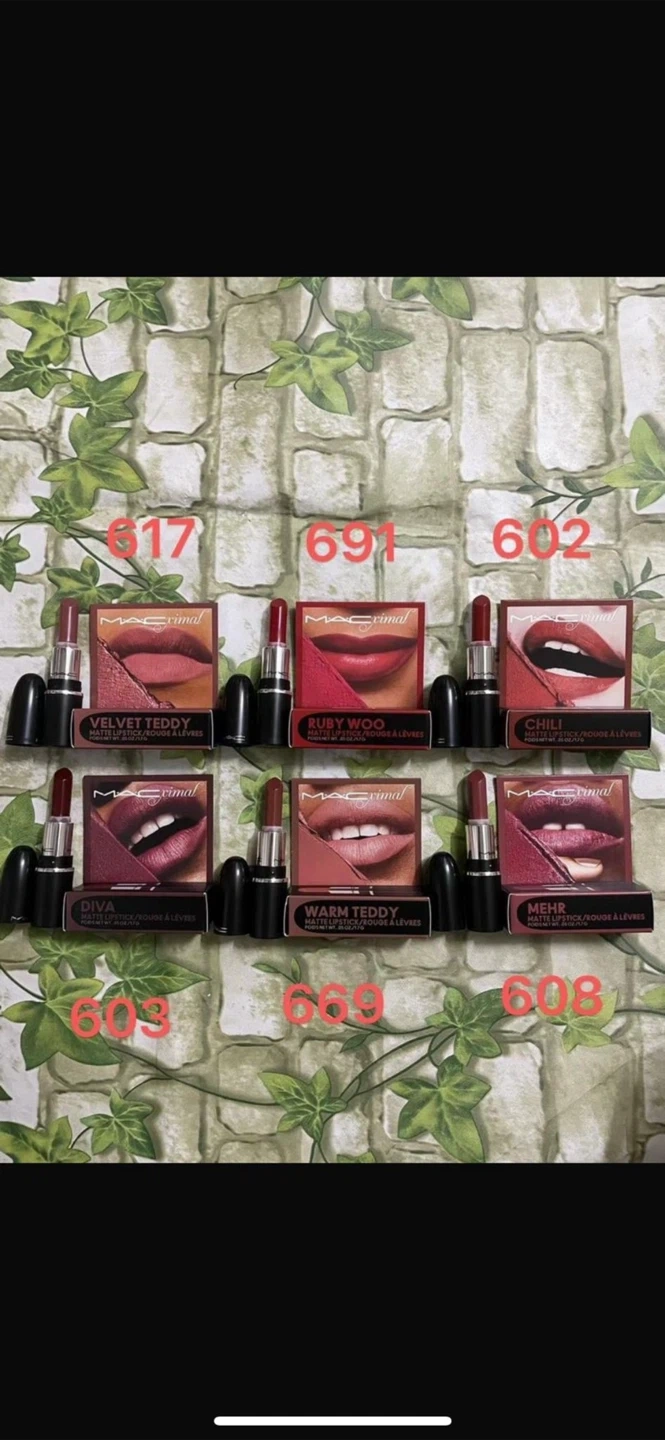 Selling a collection of MAC mini lipsticks! You'll find a variety of shades including Velvet Teddy, Ruby Woo, Diva, Chili, Warm Teddy, and Mehr. Perfect for trying out different colours or travel-sized convenience!