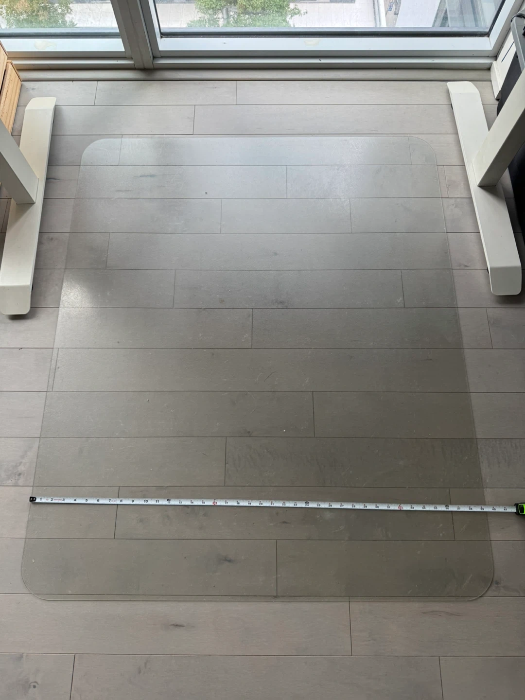 337Selling a clear office chair mat to protect your floors! It's in great condition and perfect for hardwood or tile floors. It helps your chair roll smoothly and prevents scratches and dents. The size is approximately 48 x 48 inches.