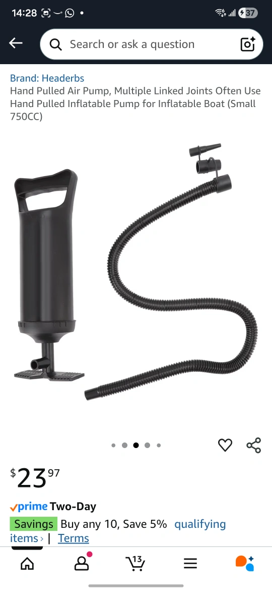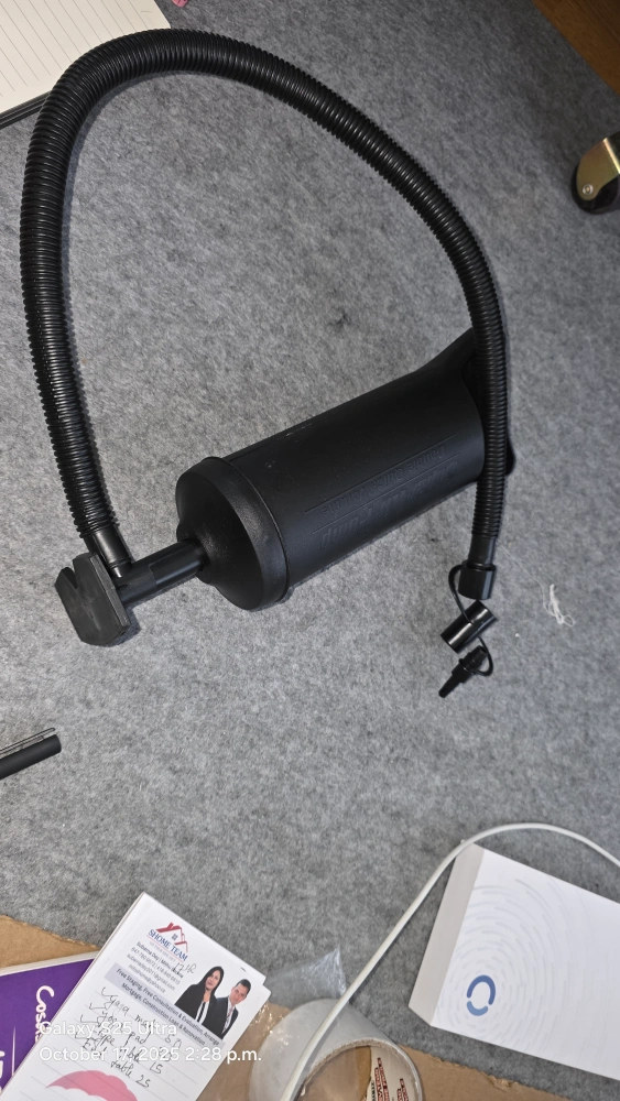 Selling a Headerbs hand pulled air pump. It features multiple linked joints and is often used for inflatable boats. It's a small 750CC model. Originally bought for $23.97