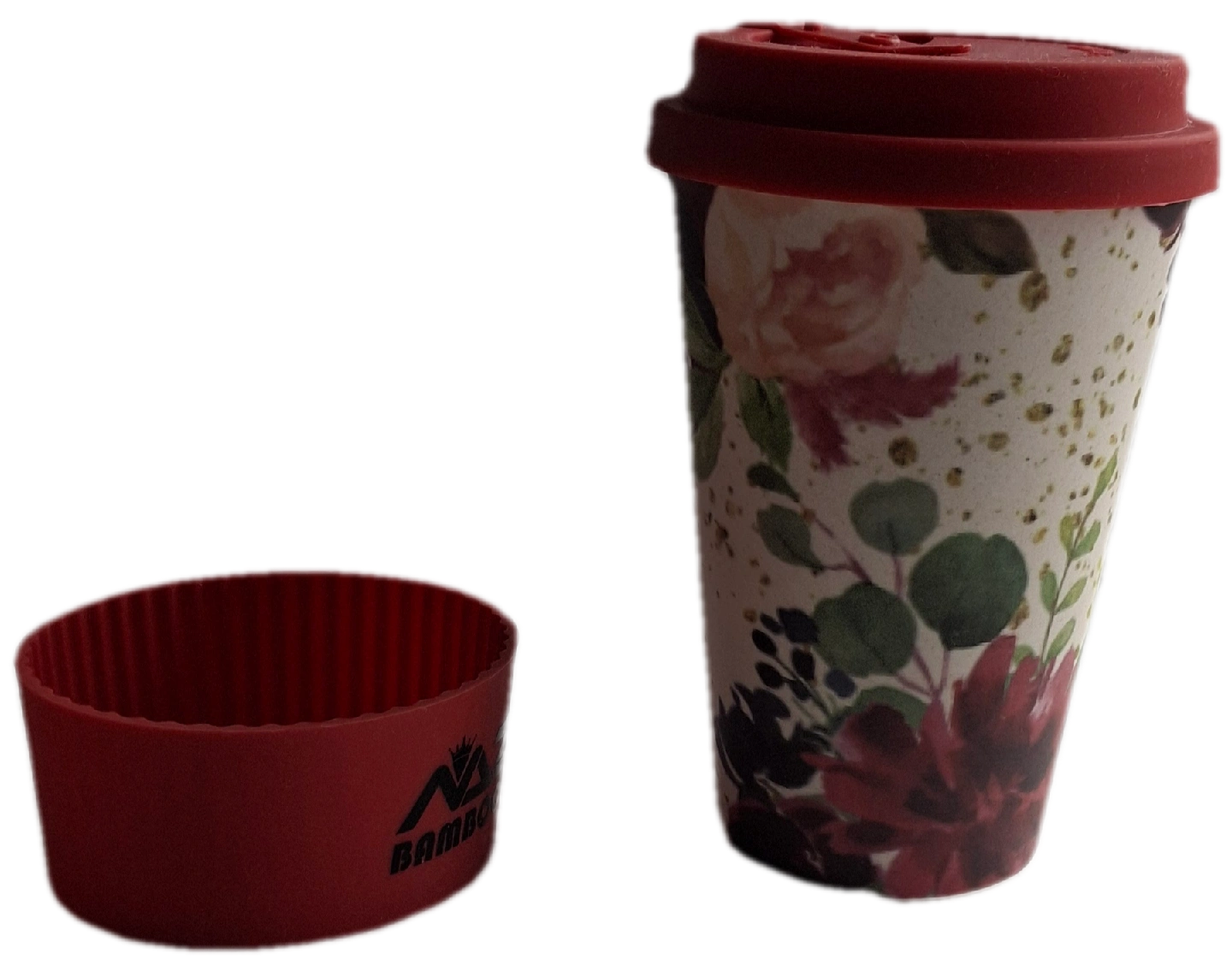 The Future is Bamboo Reusable Eco-Friendly Bamboo Fiber Coffee Travel Mug with Camping. The Mug is designed in Rose flower. This design is not available any where at all.