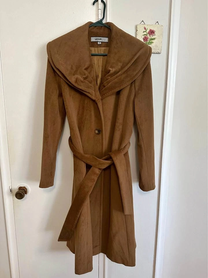 Size medium. Anne Klein coat of 75% WOOL. Everything is perfect, only smallest defect on the sleeve, shown in 2nd last pic.
