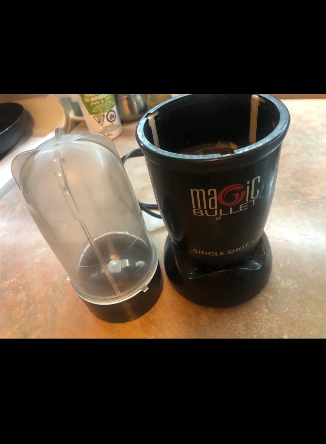 Selling a Magic Bullet Single Shot + blender! It's in good working condition and perfect for making smoothies or single-serving drinks. It's compact and easy to use, making it great for small kitchens or on-the-go lifestyles