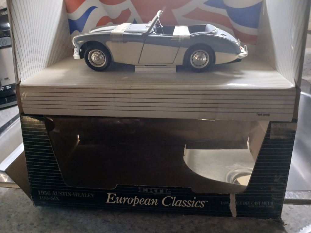 Selling an ERTL European Classics 1956 Austin-Healey 100-Six diecast car. It's a 1:18 scale model and appears to be in excellent condition, complete with its original box. A great addition to any collection!