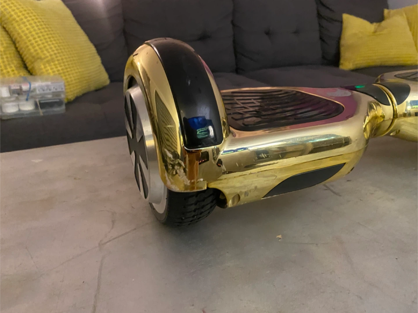 Selling a Gyroor Warrior 8.5 inch hoverboard in gold. It has some wear and tear as shown in the photos. Great for getting around!