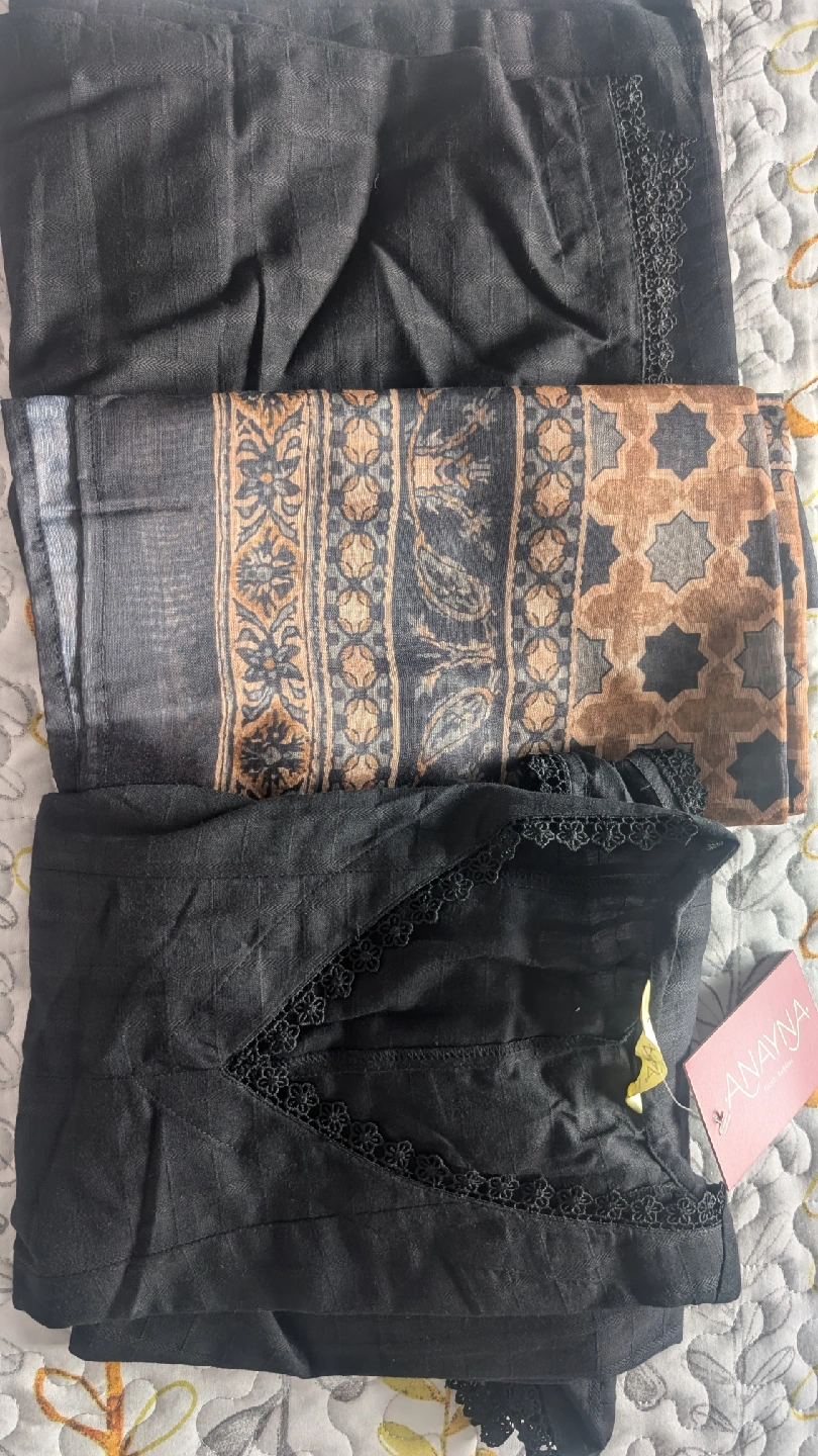 Selling a beautiful Anayna brand salwar kameez suit. It's a stylish black colour with intricate lace detailing. Perfect for a special occasion or everyday wear!