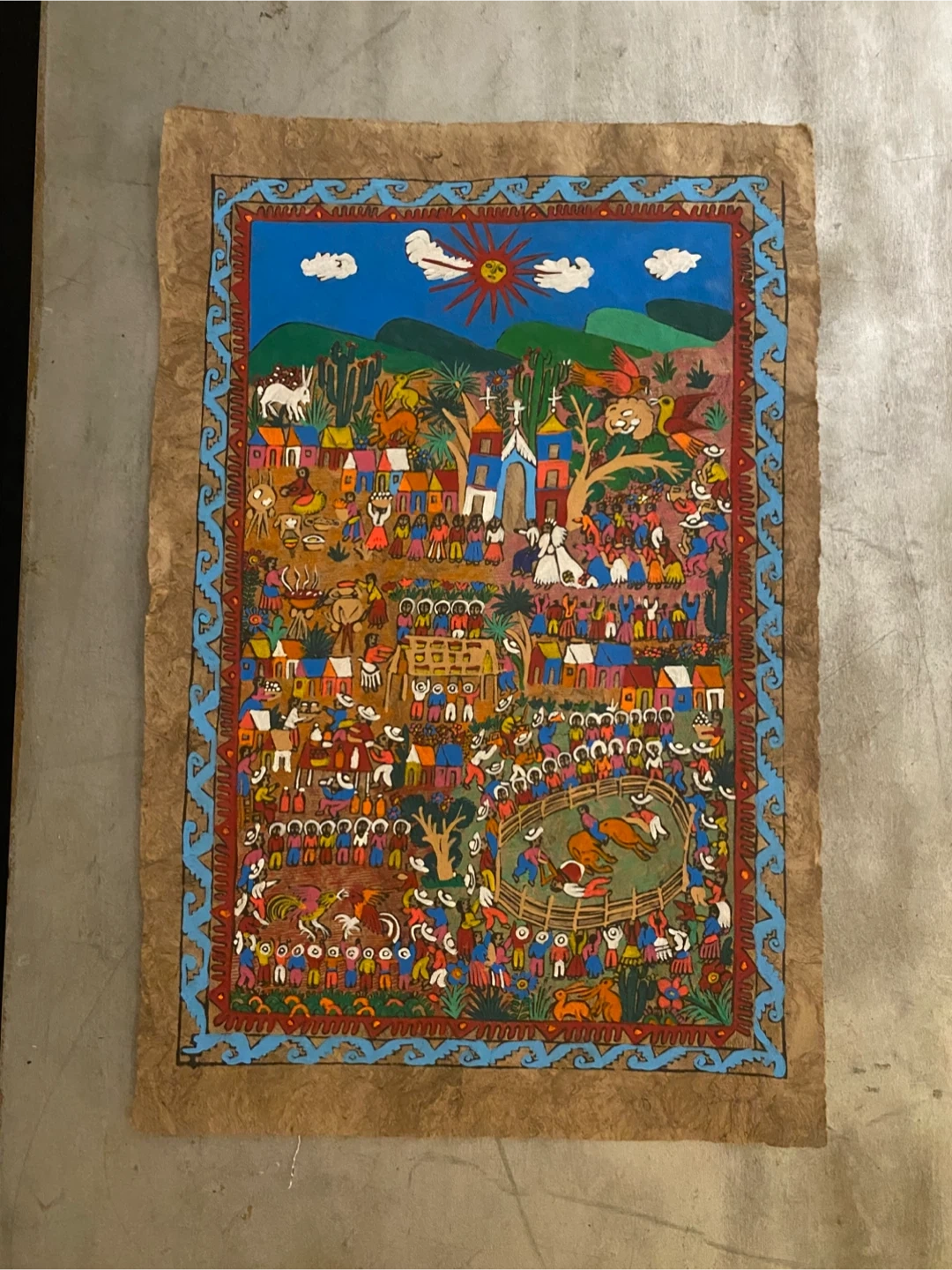 71Selling a collection of handmade art pieces. Each piece is unique and features intricate designs. There's an Aztec calendar, a colourful village scene, and a portrait. Perfect for adding a touch of culture to your home decor. Great decorating item or Christmas Present. - Aztec Calendar $80 - Colourful village $90 - Portrait $65