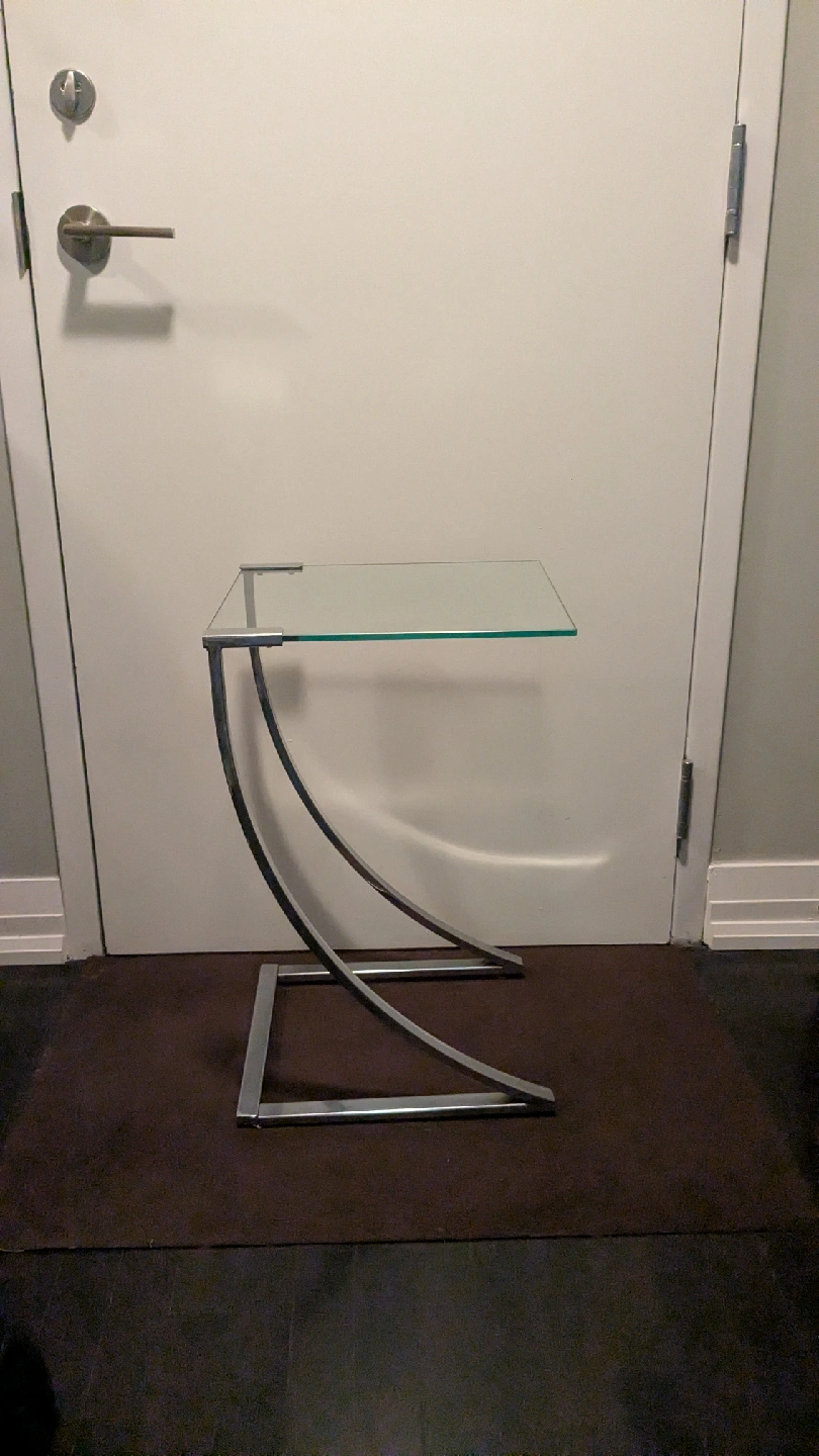Selling a modern glass top side table.