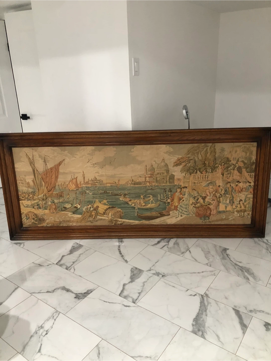 It’s a scenic picture on canvas of Venice. Frame is 7 ft length by 3 ft width. It’s used but in good condition.