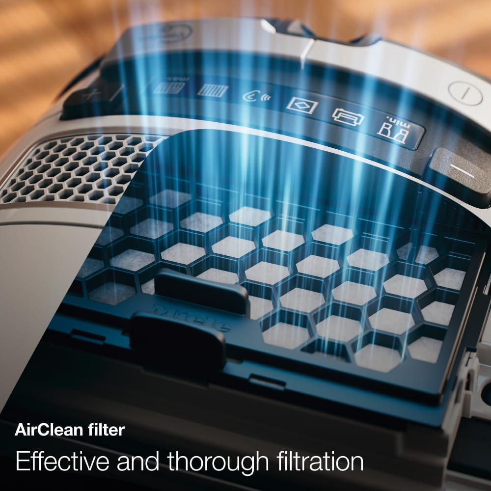This Miele vacuum offers excellent cleaning performance. When the vacuum is switched on, power increases gently and gradually to the selected power level.