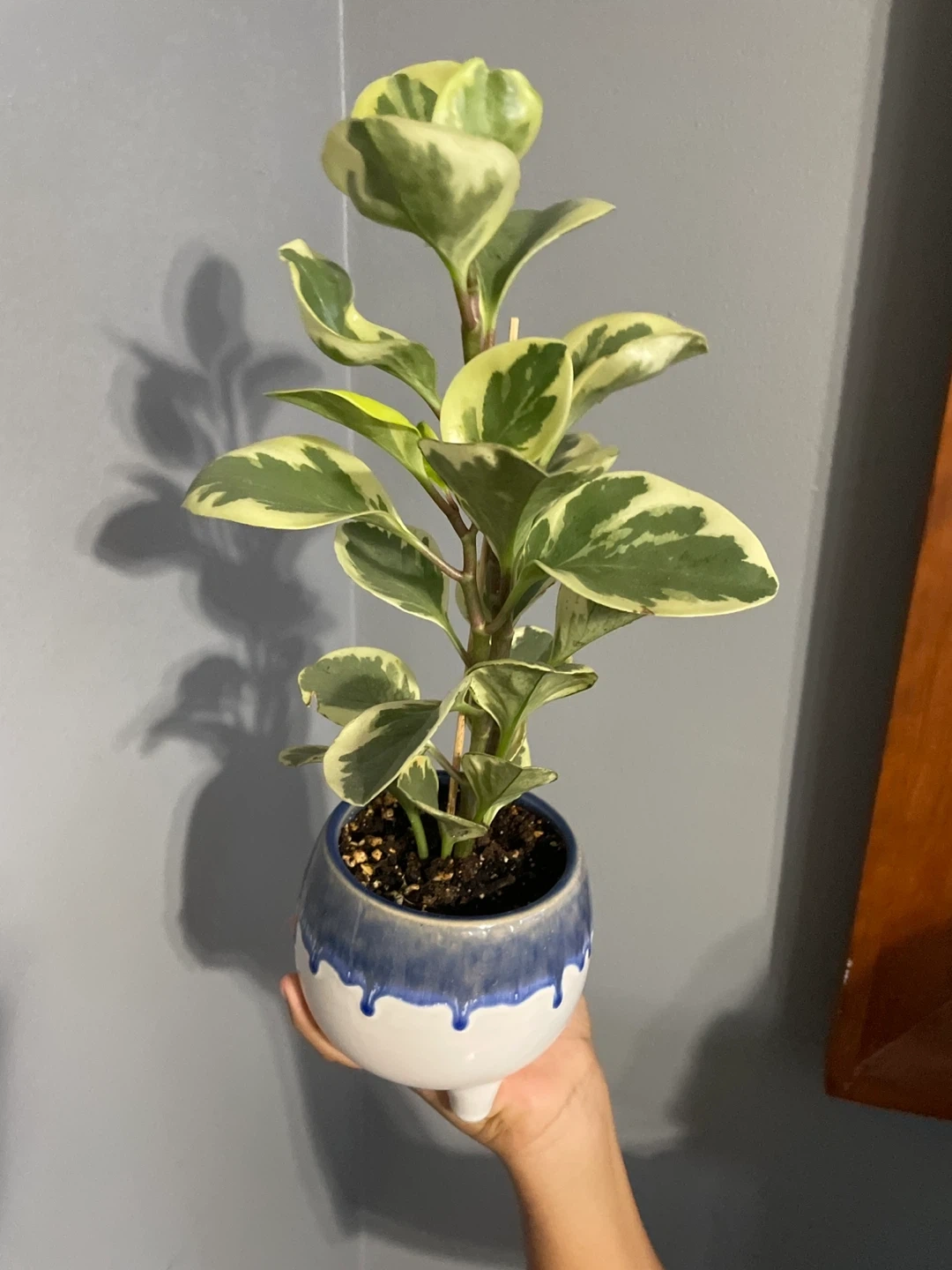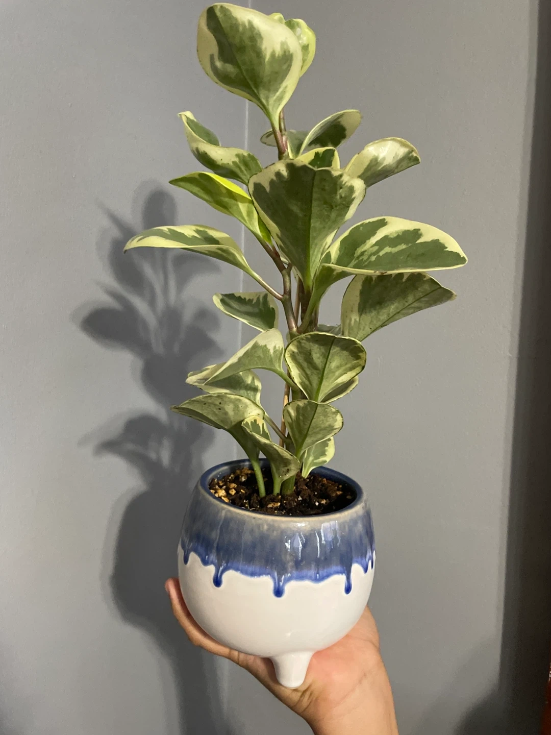 513A lovely Peperomia Obtusifolia Variegata plant in a charming blue and white pot. This plant is known for its air-purifying qualities and is super easy to care for, making it perfect for any home or office space Firm price