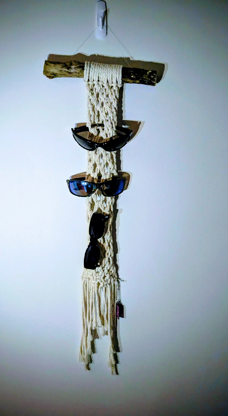 Add a touch of boho charm to your space with this macrame sunglasses holder! It's perfect for keeping your shades organized and adds a unique, handcrafted vibe to any room.