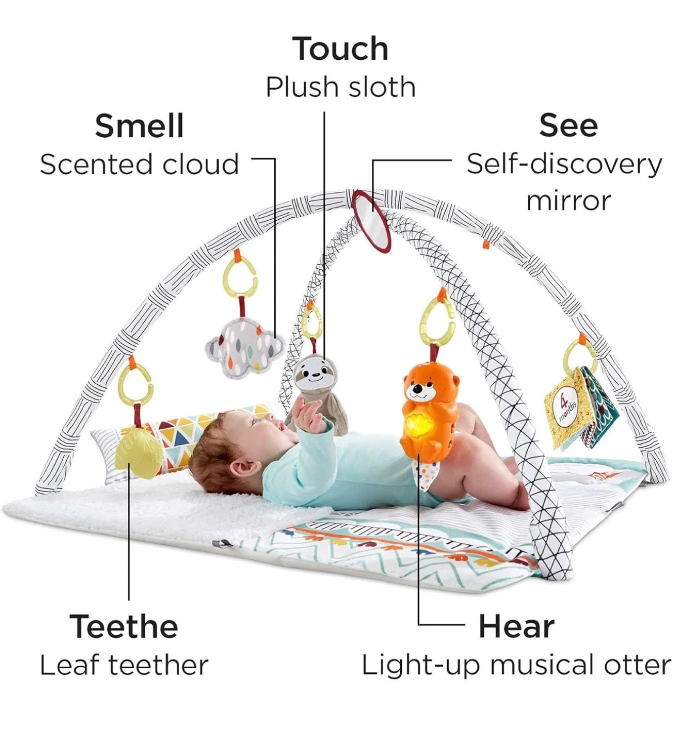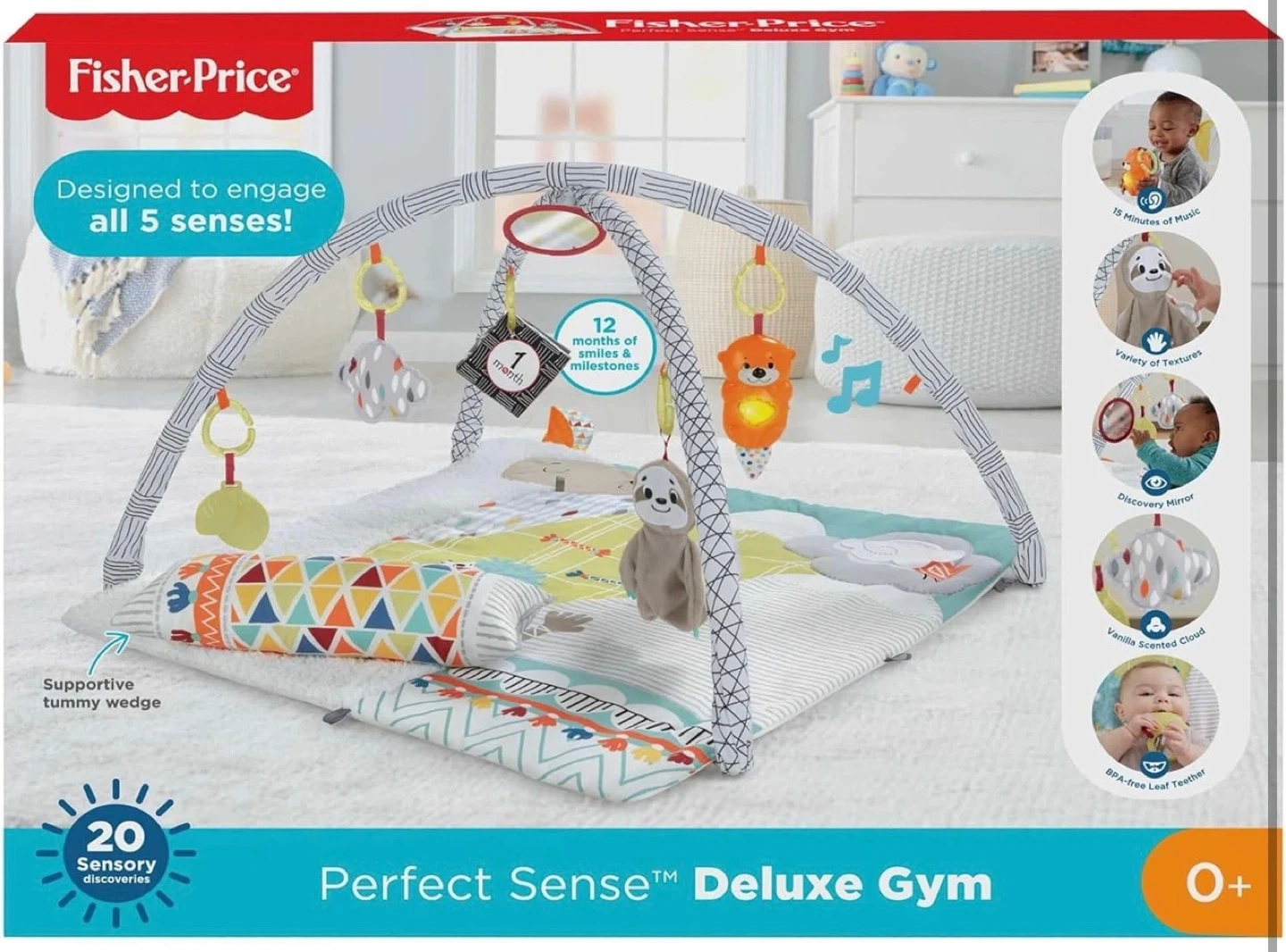 This Fisher-Price Perfect Sense Deluxe Gym is perfect for your little one! It's designed to engage all 5 senses with 20 sensory discoveries.
