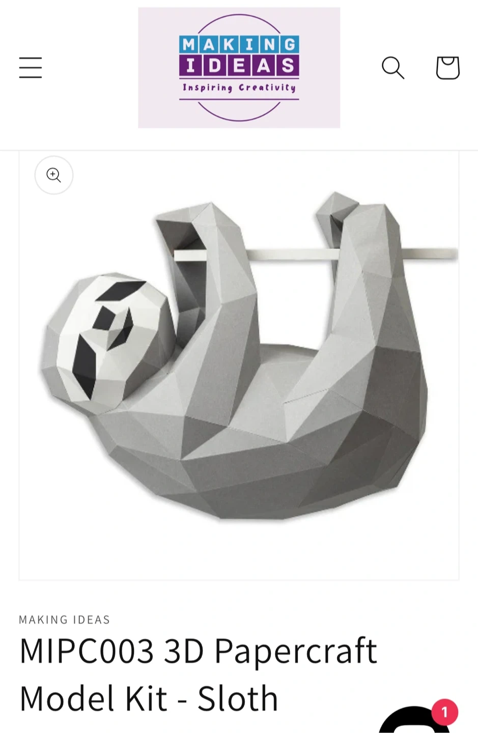 275Get ready to craft your own adorable sloth with this 3D papercraft model kit from Making Ideas! The kit includes everything you need. Once assembled, the sloth will be approximately (H) 257mm x (W) 304mm x (D) 180mm. It's estimated to take about 10 hours to complete and has a difficulty level of 4.