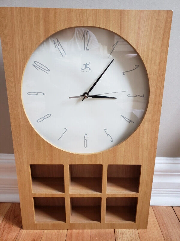 10Infinity wall clock, in prestine condition. $35.00 12x19 inches, around the small shadow box size 3x3 inches. OBO