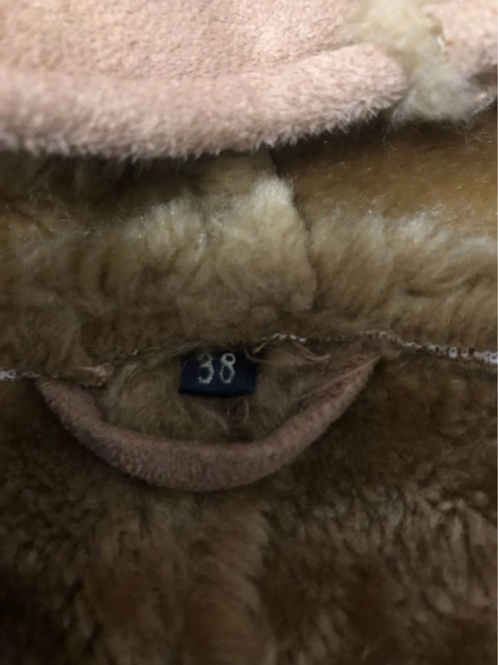 Size 38. Has embroidery on the sleeves, the bottom of the jacket, and the back. Has two open pockets. Heavy with lots of fur to keep you warm. In very good condition, barely ever worn.