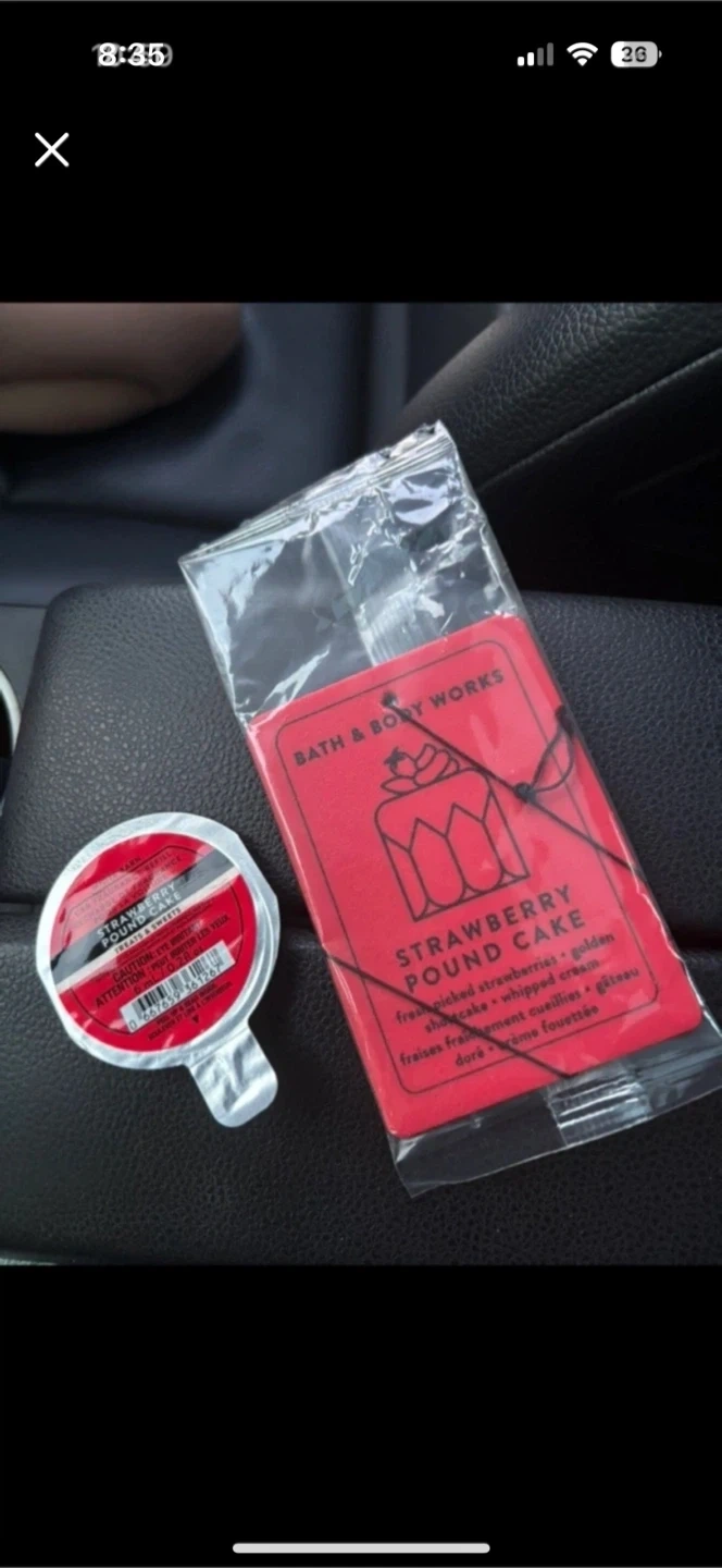 I have a Bath & Body Works Strawberry Pound Cake car scent and refill for sale! It smells amazing and will keep your car smelling fresh and sweet. Perfect for anyone who loves the scent of strawberries and cake