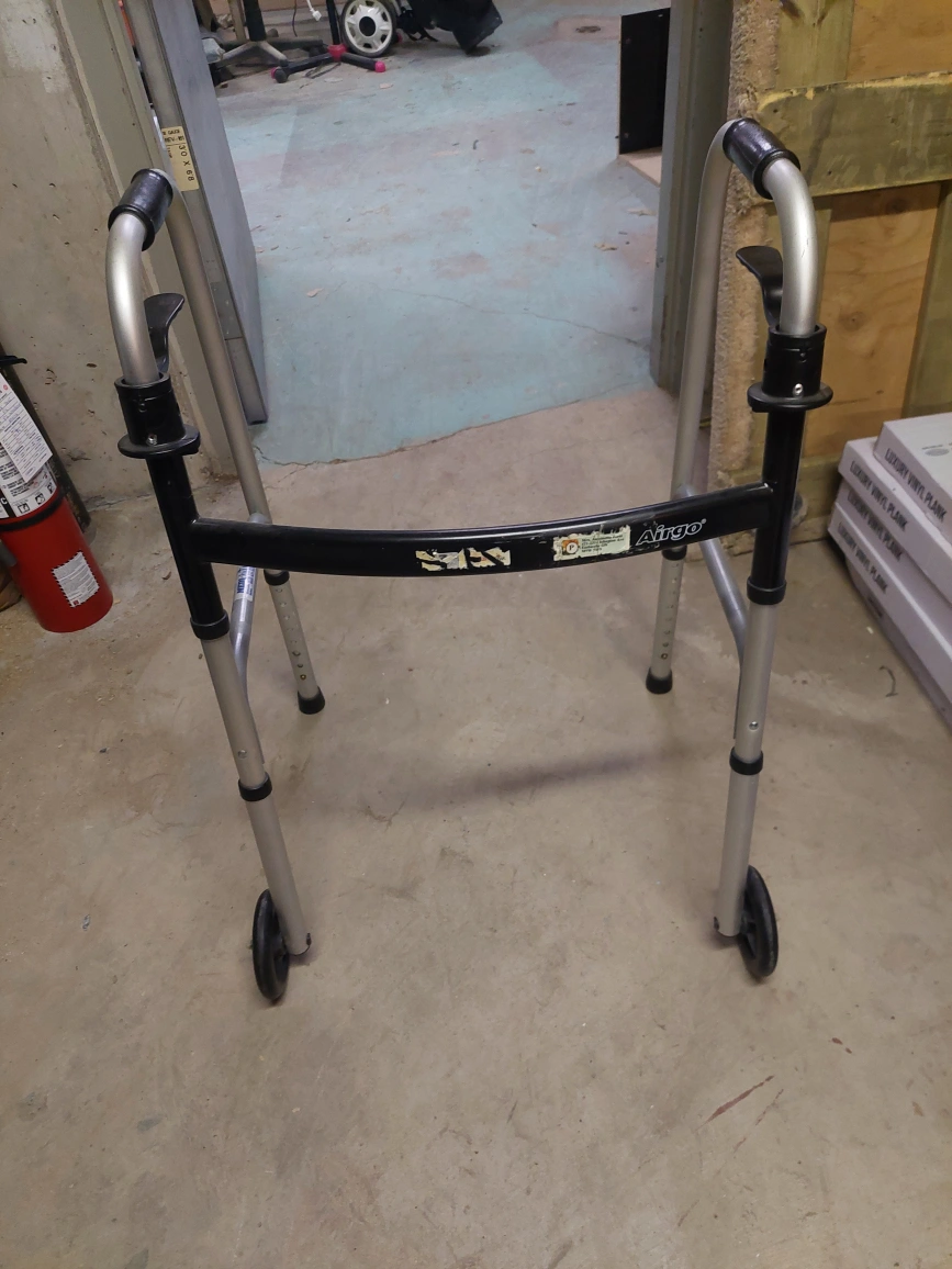 Selling an Airgo walker. It's in good condition and ready to help someone get around safely. The walker features a sturdy frame and comfortable hand grips.