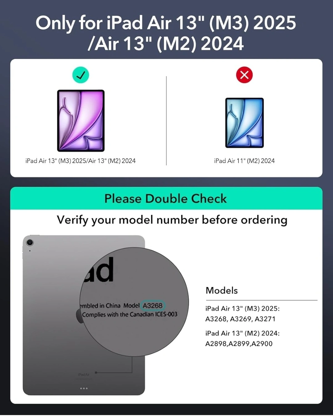 Compatibility: only for iPad Air 13” (M3/M2 2025/2024); Model A2898, A2899, A2900, A3268, A3269, A3271