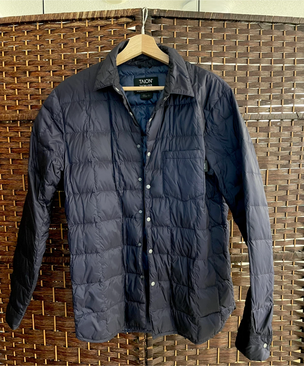 Lightly used and in great shape, this Taion quilted down shirt jacket brings serious steez with everyday versatility. The clean navy color, quilted pattern, and relaxed fit give it that effortless balance between street and minimalist outdoor style.