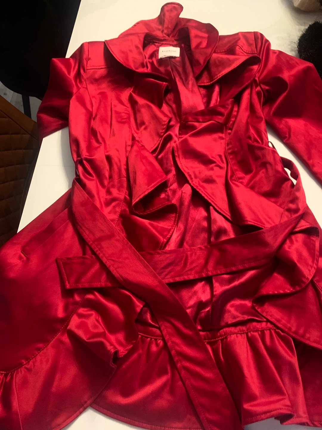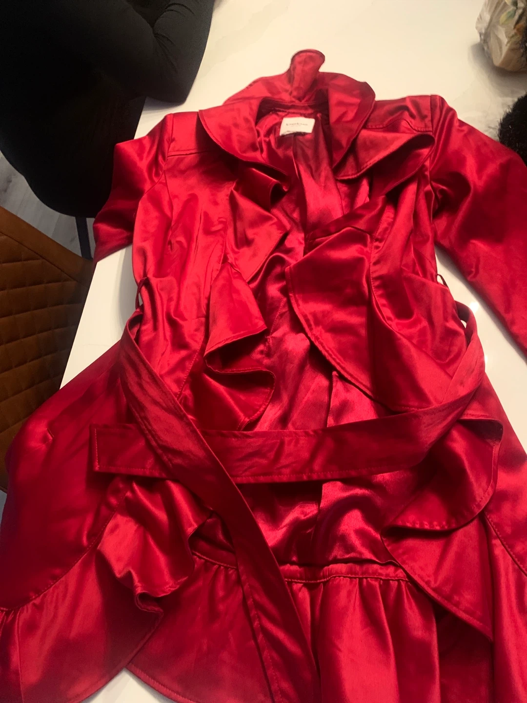 25Selling a beautiful Bebe dress in a vibrant red satin! It features a unique ruffle design and a flattering silhouette. Perfect for a night out or a special occasion. Size XS.
