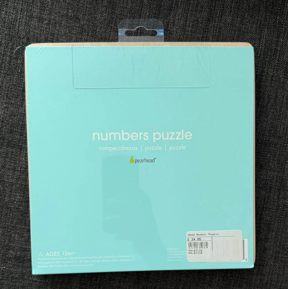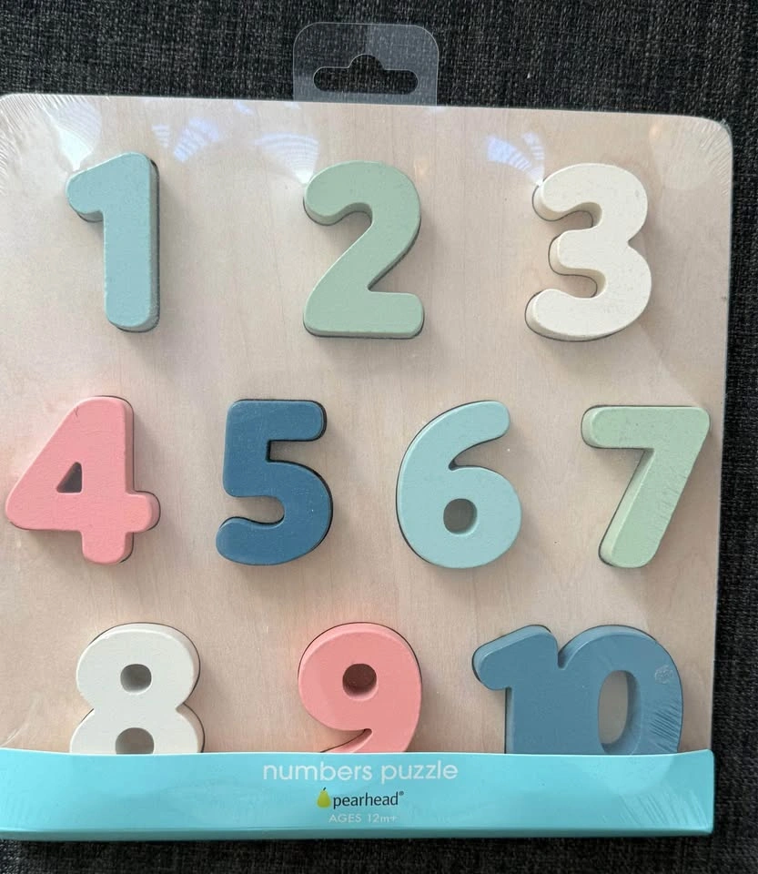 10Brand new and still in original packaging. Pet free and smoke free home. The price is firm. Your little baby girl or baby boy will love playing and learning their numbers with this adorable wooden puzzle by Pearhead! Includes wooden 1-10 number puzzle in multicolor earth tones; for ages 12 months and up. This fun and educational toy will help parents and their little ones create special memories they will share and love for years to come! And when playtime is over, this wooden toy puzzle makes the perfect nursery décor accessory!