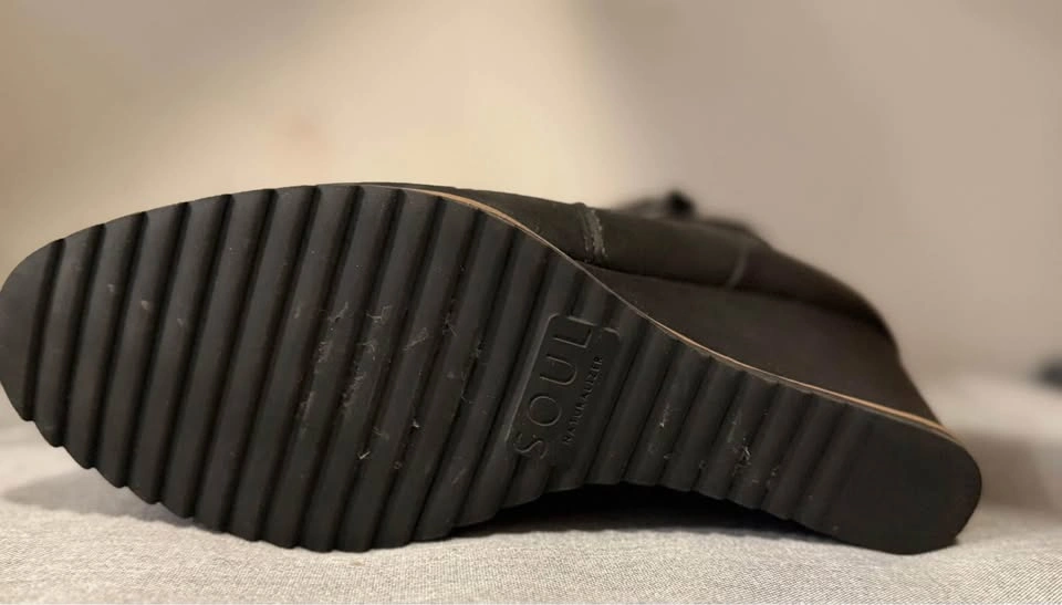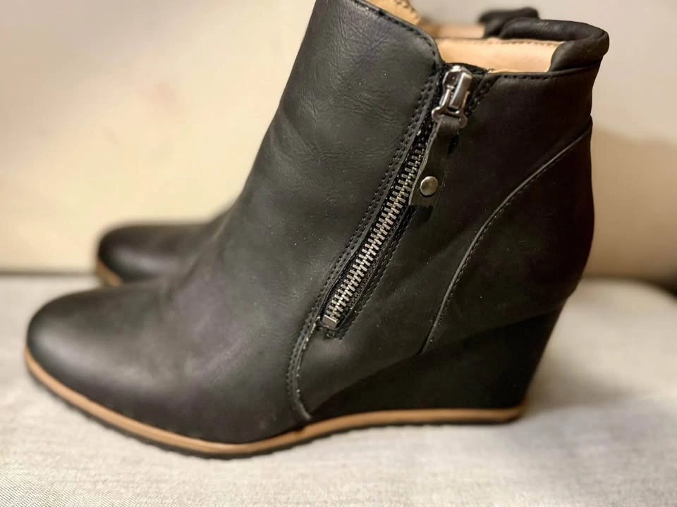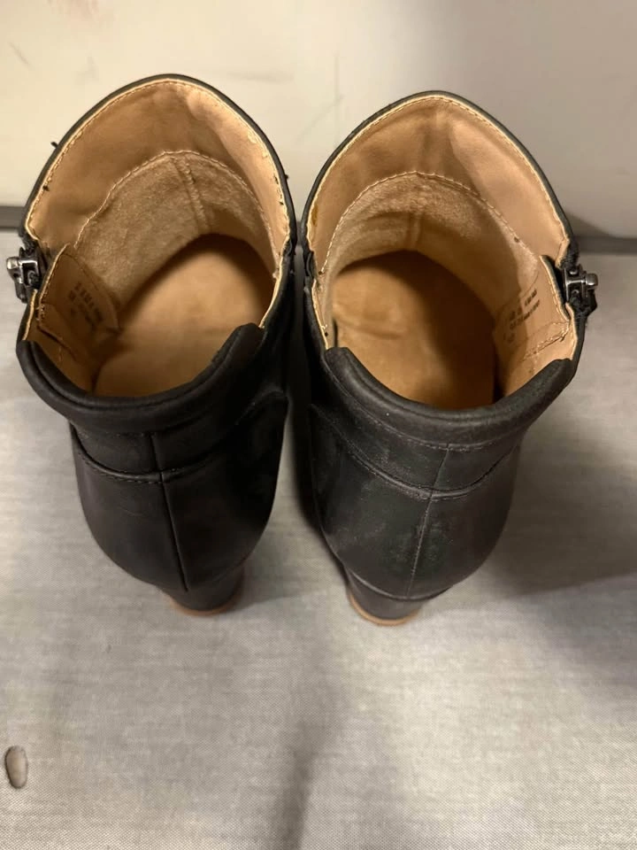 10Size 9.5 Pet free and smoke free home The zipper of the left shoe just needs a little tug to zip up.
