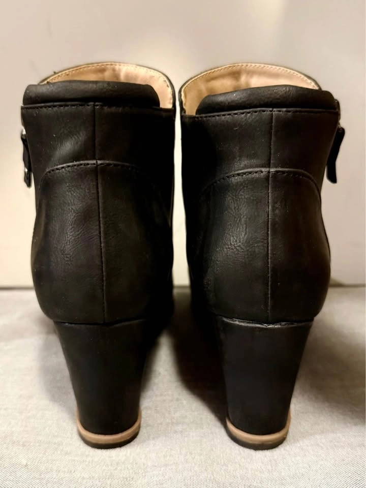 Black Patent faux Leather Ankle Boots (Size 7 women)