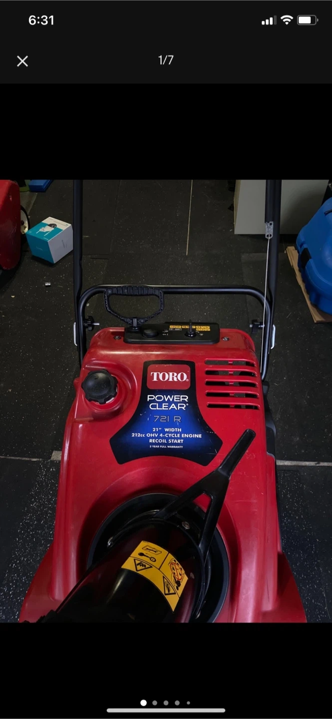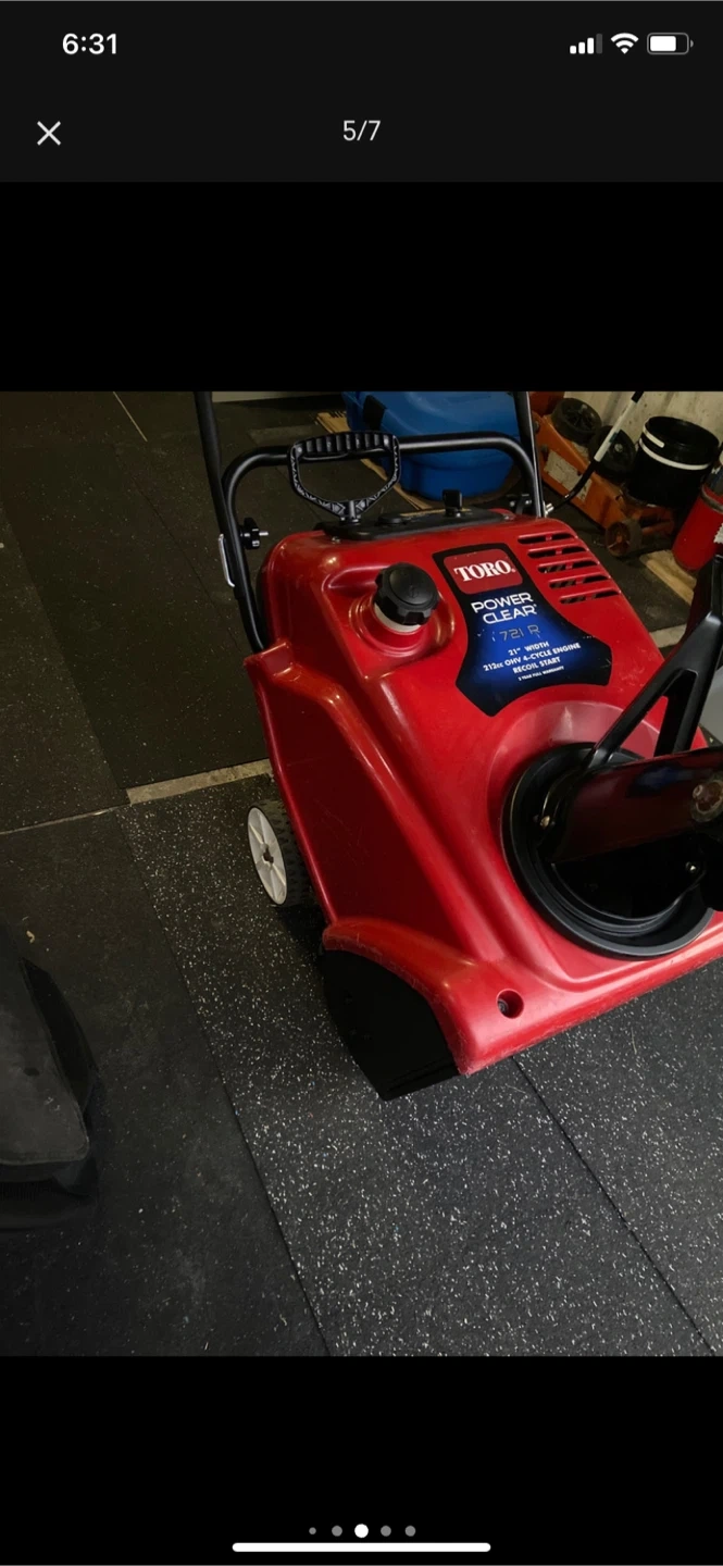 Selling a Toro Power Clear 721 R-C snow blower. It has a 21" width and a 212cc OHV 4-cycle engine. It also features a recoil start. Great for clearing snow this winter! Has new plug new paddles and scrapper bar and new carb $600