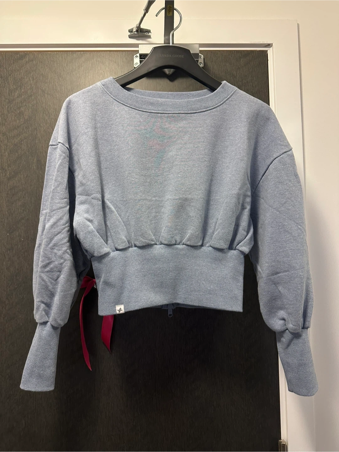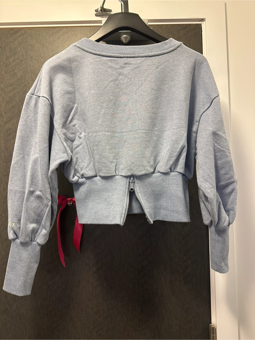 Selling a cute cropped sweatshirt in a lovely blue colour! It features a unique zipper detail at the back and a stylish, comfortable fit. Perfect for adding a touch of style to your casual outfits