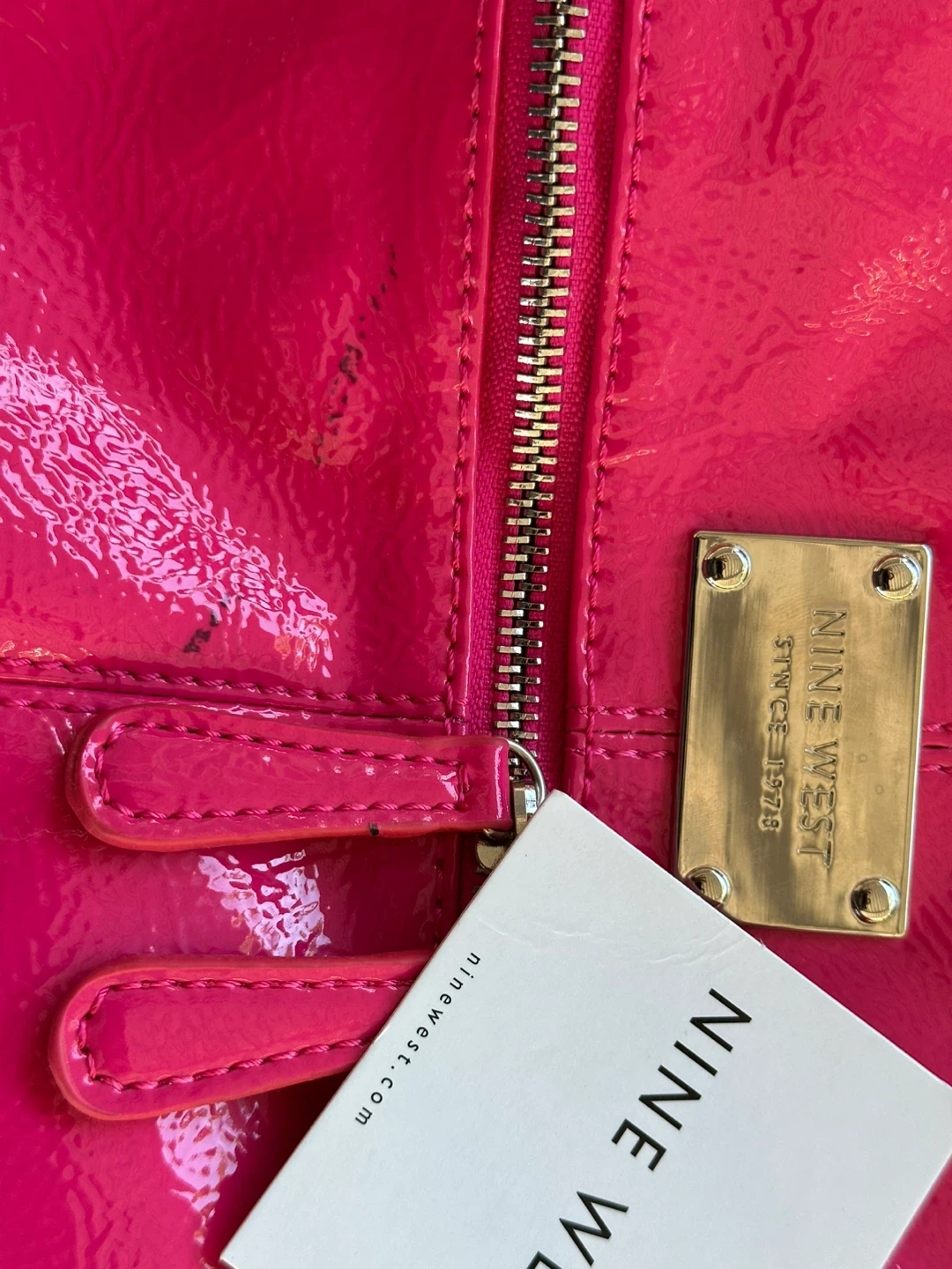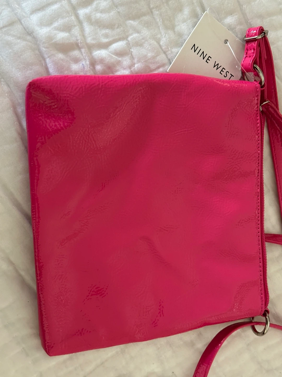 28This is a brand new Nine West crossbody bag with tags still attached! It's a vibrant pink colour and perfect for carrying your essentials. The bag has a zipper and a crossbody strap.