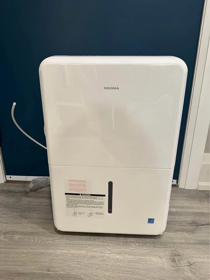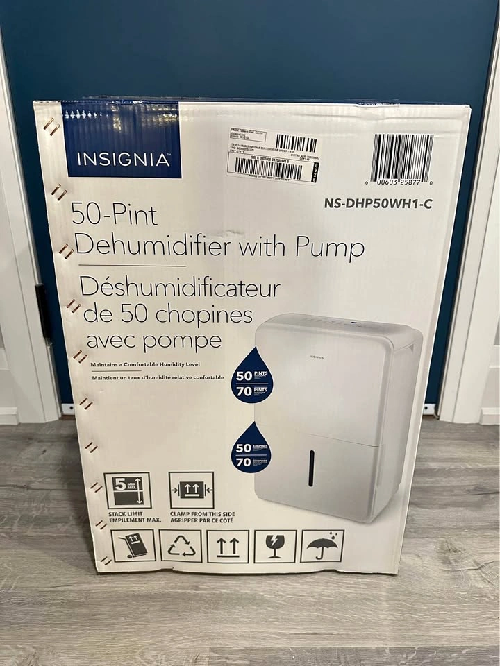 15Insignia 50 Pint Dehumidifier with Pump. Ended up moving and didn’t need to use. Easy setup, and the pump allows you to set and forget. Never needing to worry about emptying the reservoir every day like most dehumidifiers. If the listing is up, it’s available.