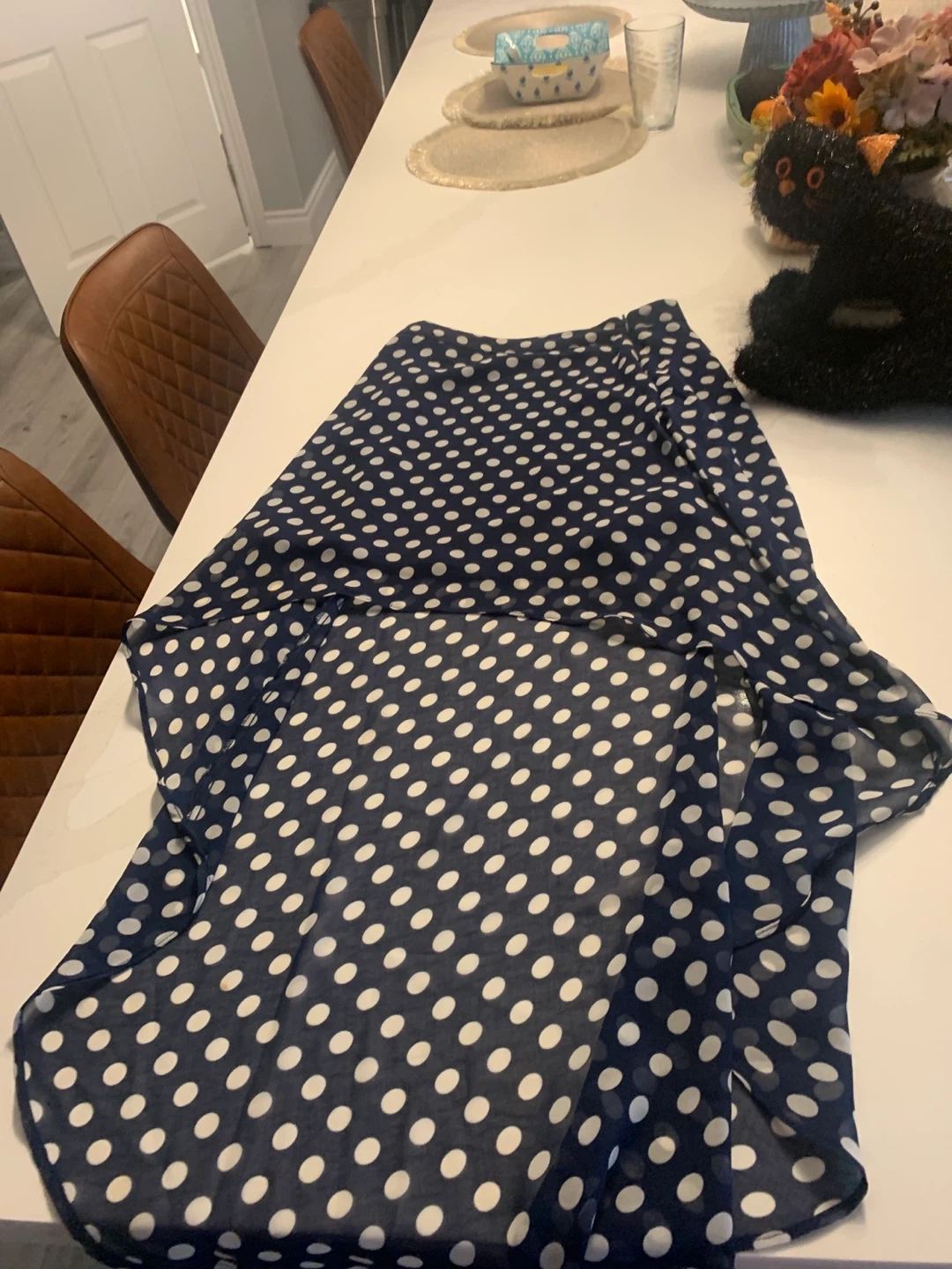 25Selling a cute Forever 21 navy skirt with a white polka dot pattern! It's a size XS and made in China