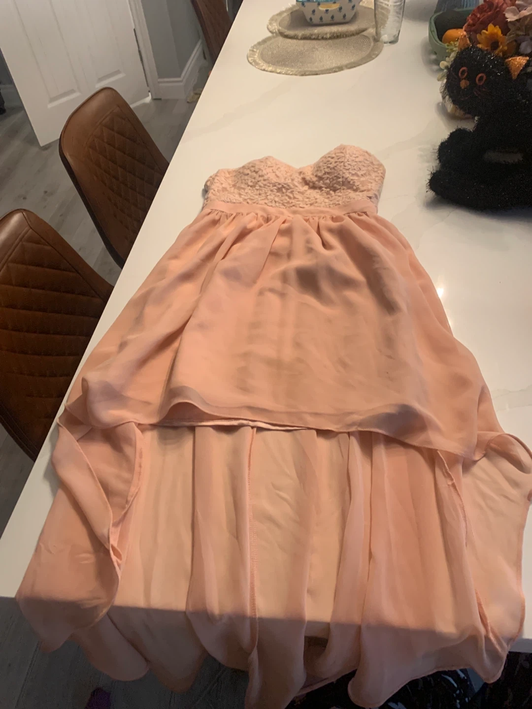 Selling a cute Forever 21 Exclusive dress in a lovely pink colour! It's a size small and perfect for a special occasion or a night out. The top part has a beautiful lace design, and the bottom is flowy and comfortable. It's in great condition and ready for a new home