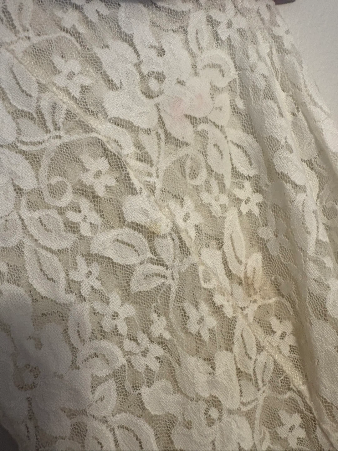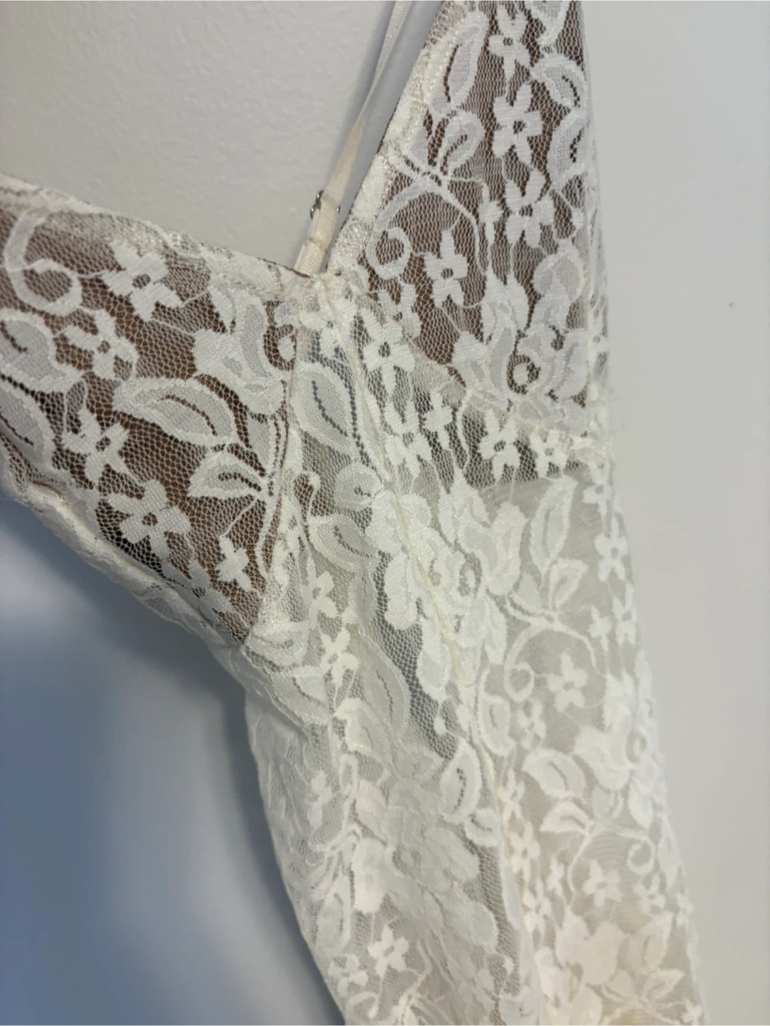 65Selling a white lace jumpsuit. It has a V-neck and a strappy back. Stretchy material. There’s small stains but they are really not noticeable. Comes with the white undergarment. Perfect for a night out or for Halloween 🎃 Original price was $155 cad