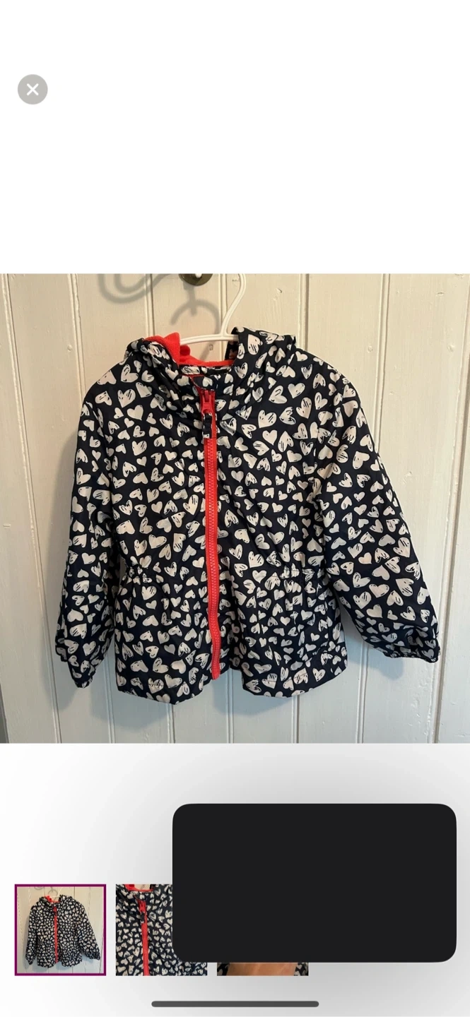 George brand. Fleece lined zip up jacket. Water resistant. Navy with white heart print and pink fleece lining. Size 3t. Brand new condition $8 Pickup between kincardine & ripley or I can arrange delivery in port Elgin-Owen sound, walkerton-Durham, wingham-listowel-kw/cambridge, goderich-bayfield, Woodstock & Arthur-Orangeville-Newmarket-Lindsay-Peterborough AREAS.