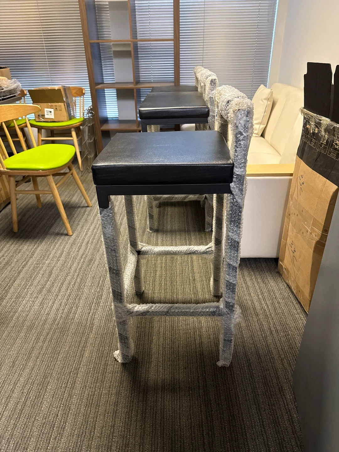 15Selling a brand new black bar stool. It's still in its original packaging, ensuring it's in perfect condition for your home or bar setup. The seat is black, and the frame appears to be silver. This stool is ready to add a touch of modern elegance to your space!