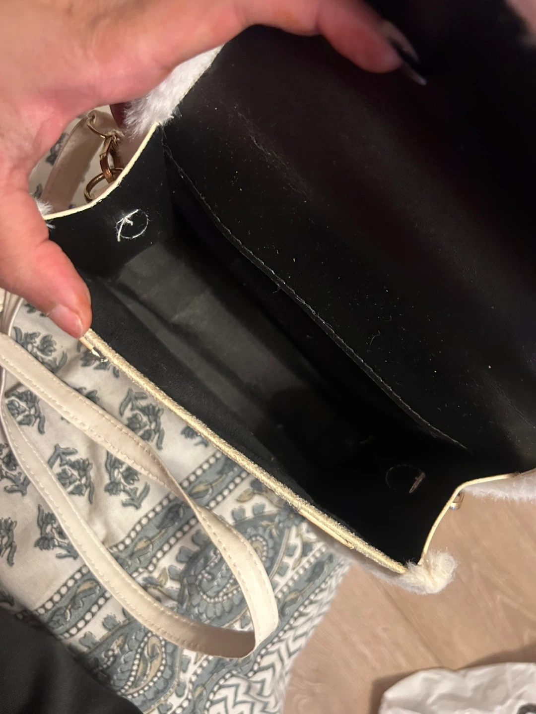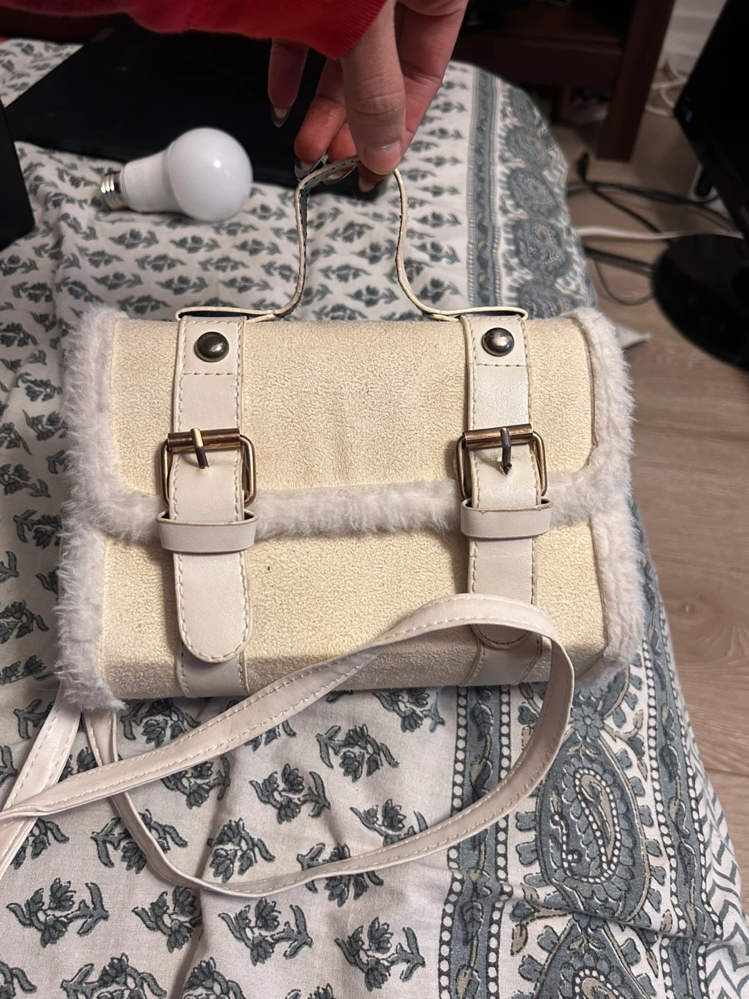 Selling a cute cream-coloured crossbody bag with faux fur trim! The bag features a buckle design and a long strap for comfortable wear. It's in great condition and perfect for adding a touch of style to any outfit Pick up 70 temperance street